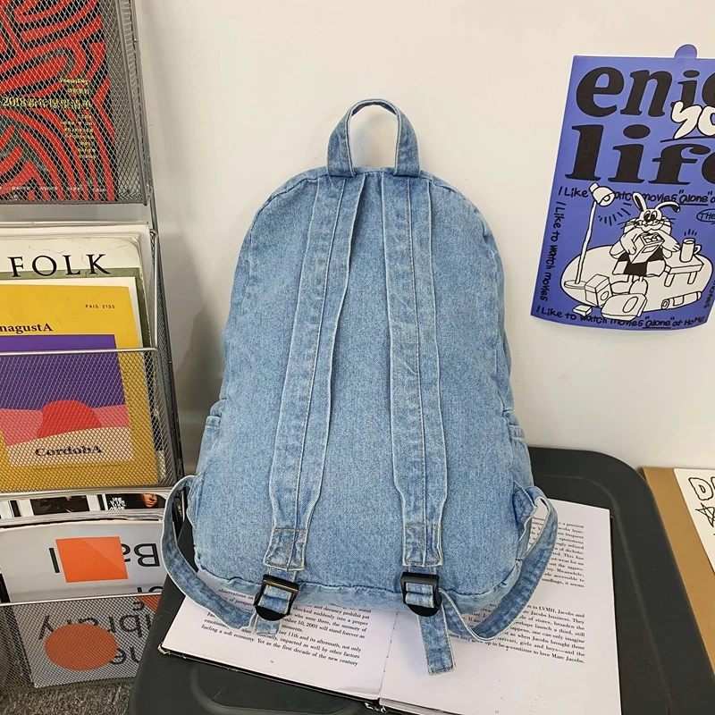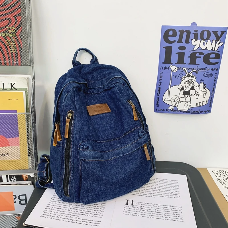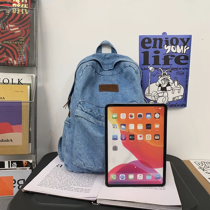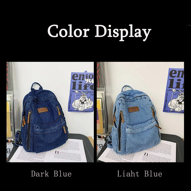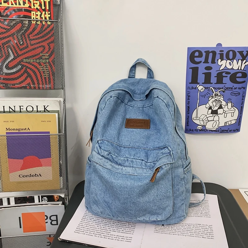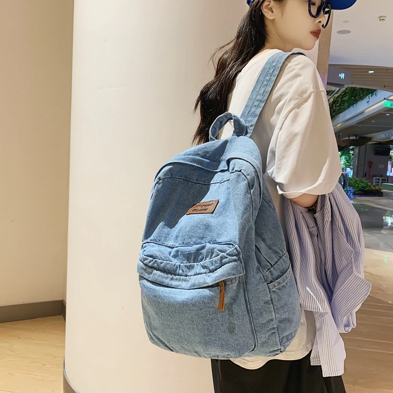 weiyinxing Ladies Soft Canvas School Backpack Trendy Denim Boy Girl Travel Student Bag Male Female College Backpack Men Women Bags