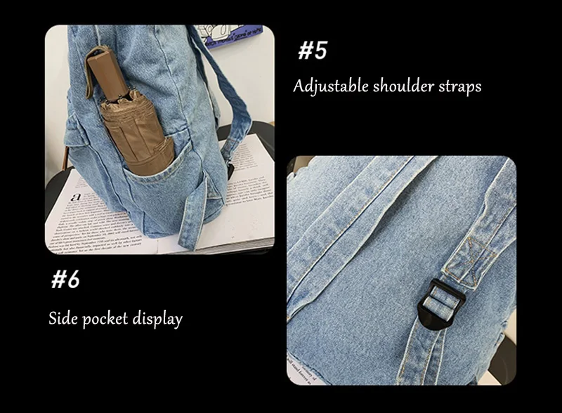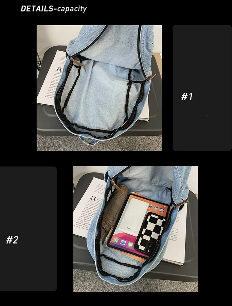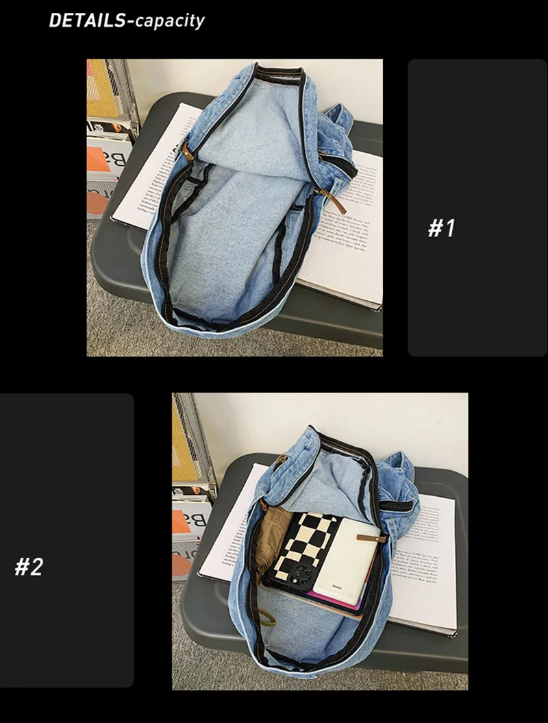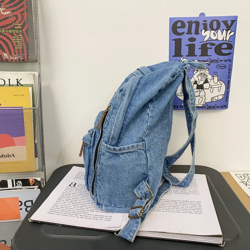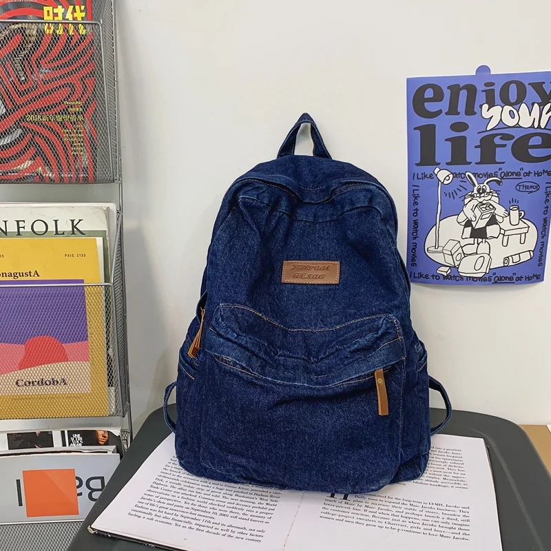 weiyinxing Ladies Soft Canvas School Backpack Trendy Denim Boy Girl Travel Student Bag Male Female College Backpack Men Women Bags