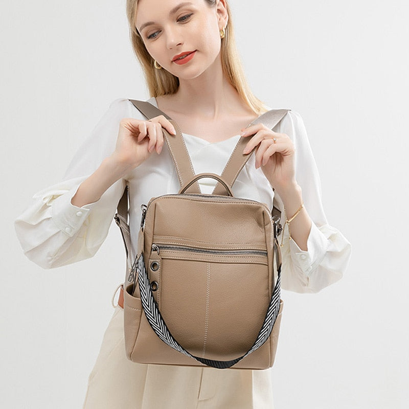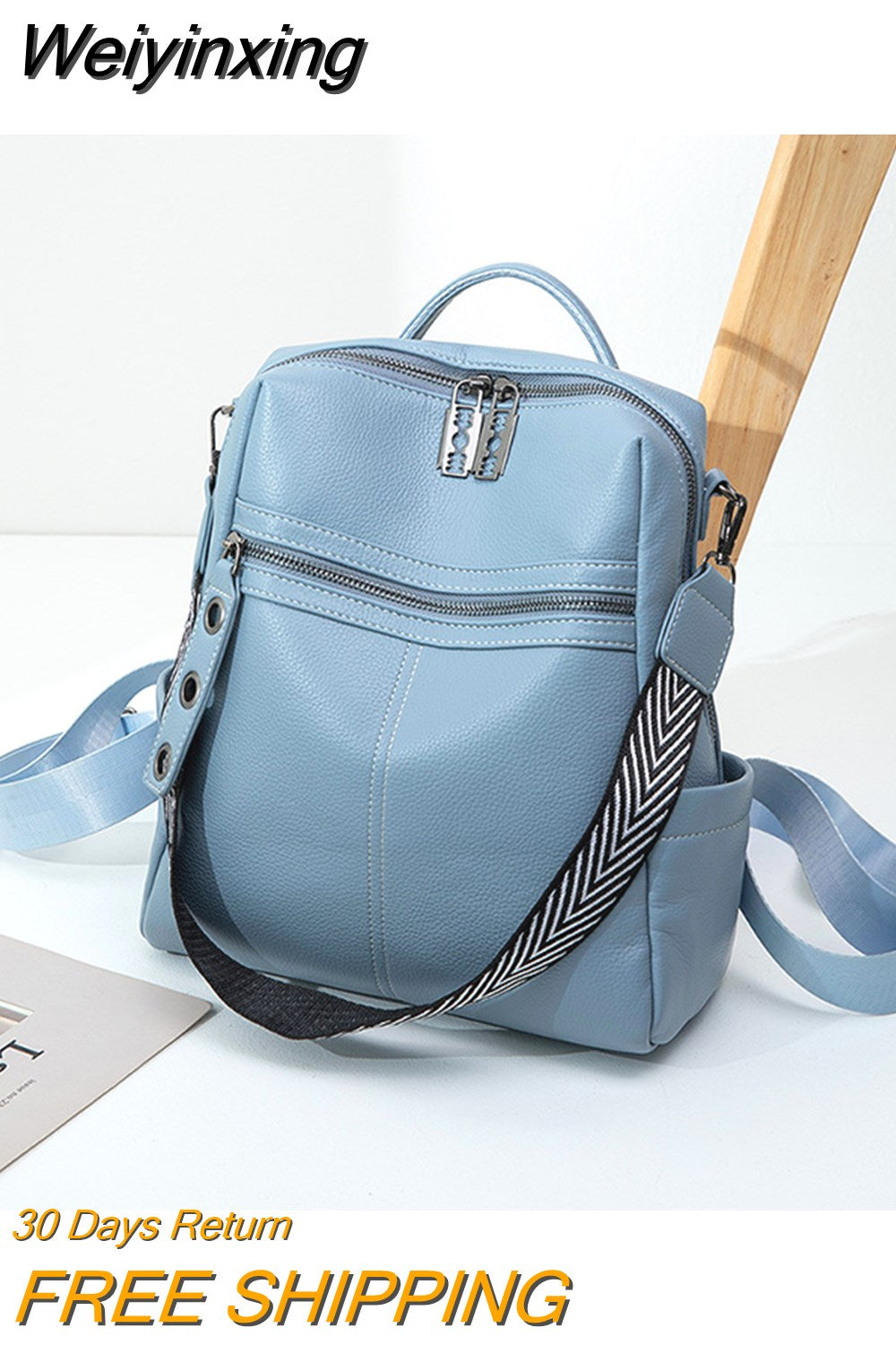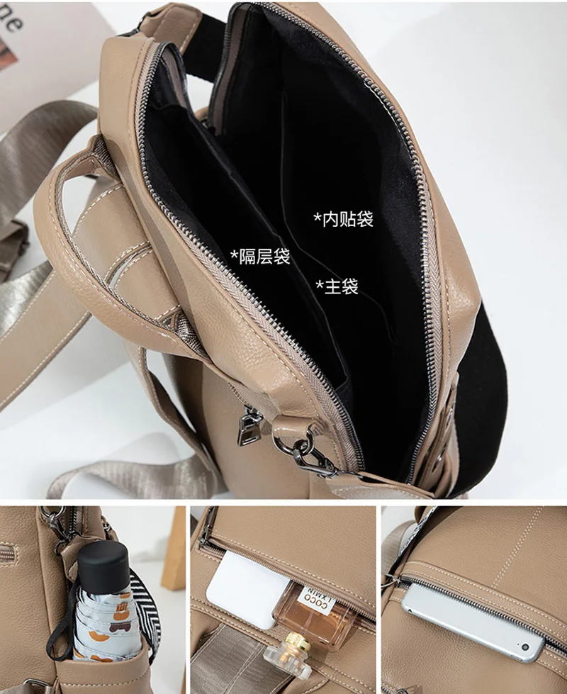 Weiyinxing Leather Backpack Women Solid Color Fashion Wild Trend Casual Large Capacity Ladies Travel Bag Backpack for Teenage Girls