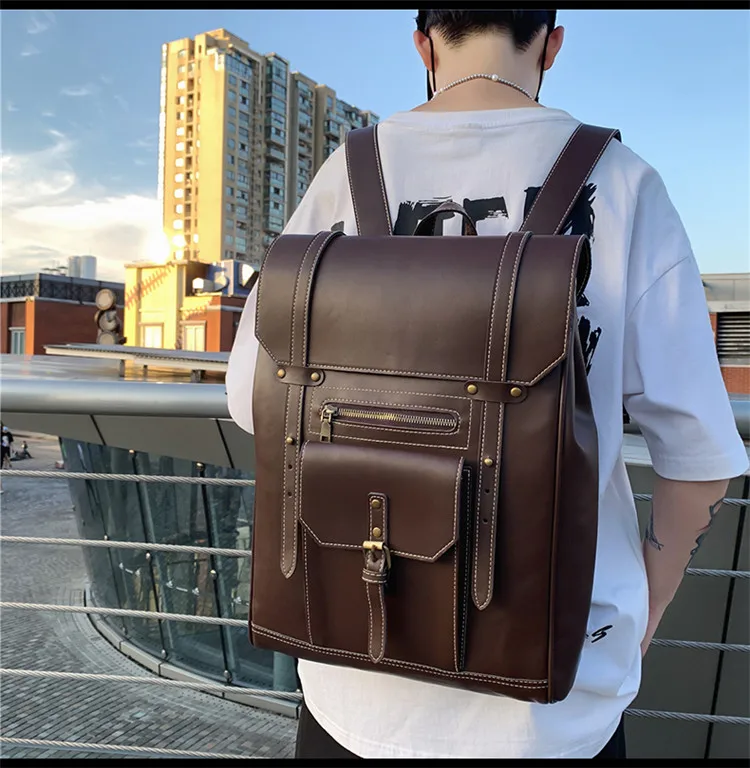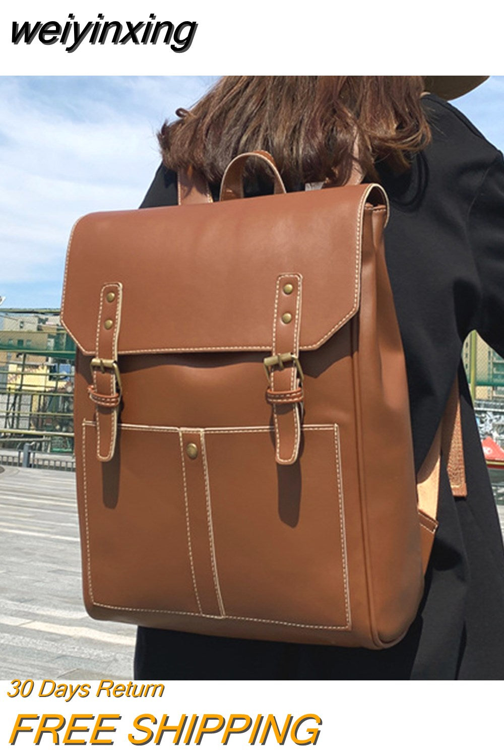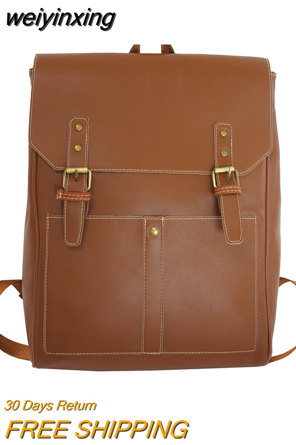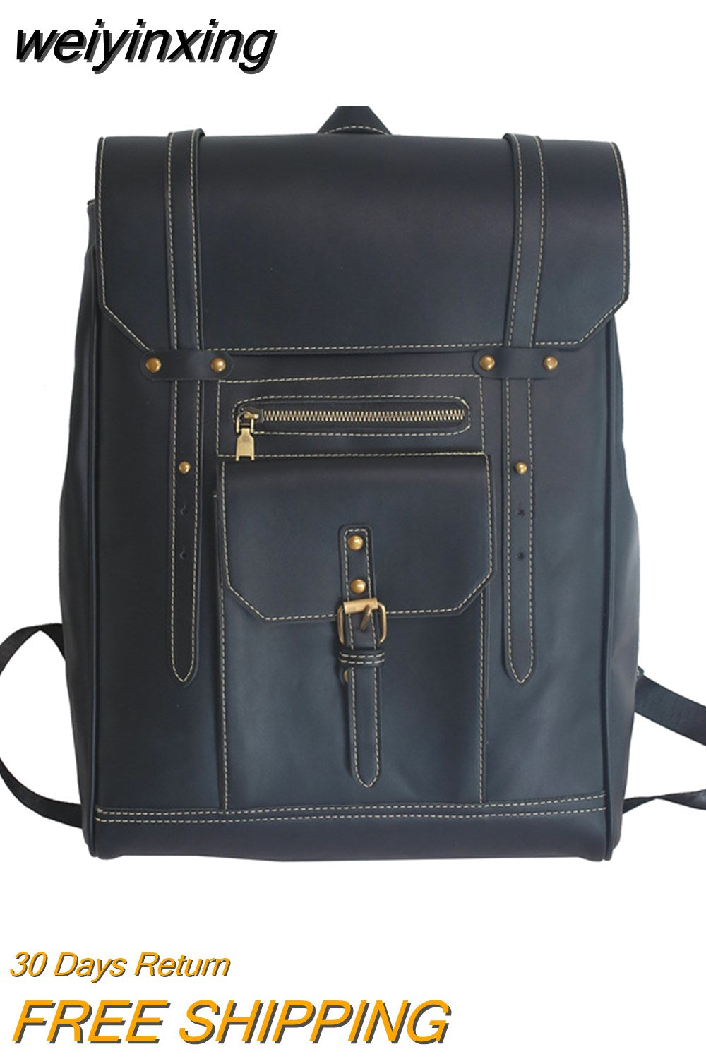 weiyinxing Leather Woman Backpack High Quality Female Rucksack Vintage Double Shoulder Bag Large Capacity School Bag Backpacks Mochila