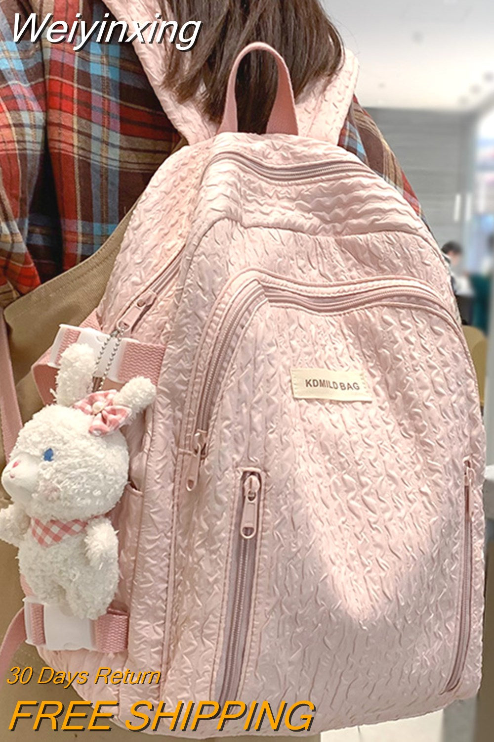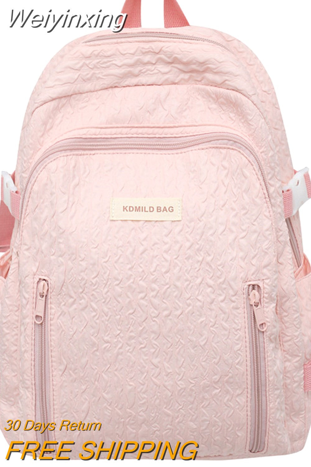 Weiyinxing Leisure Pink Women Kawaii New Nylon Laptop Book Bag Trendy Girl Travel School Bag Fashion Cute Female College Backpack Cool