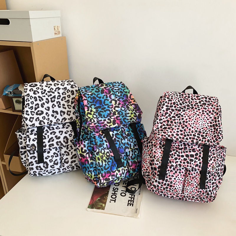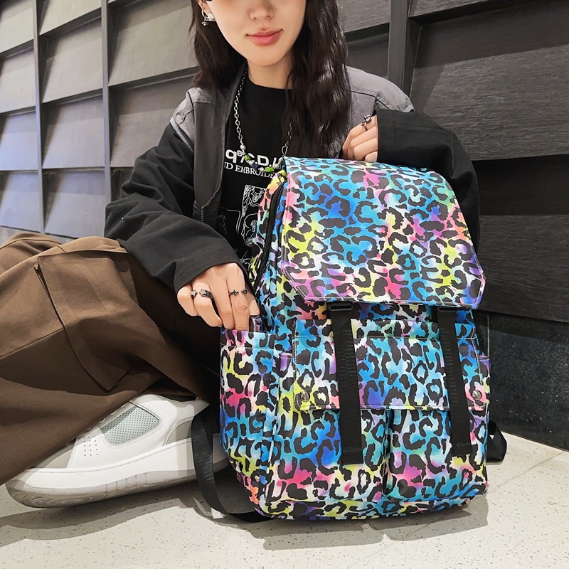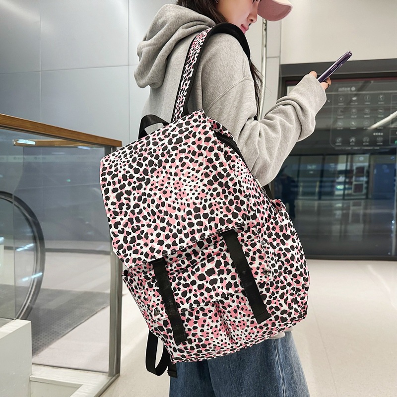Weiyinxing Long School Bag Female Korean Version Of Fashion Leisure Large Capacity Campus Backpack Flip Leopard Print Student Backpack
