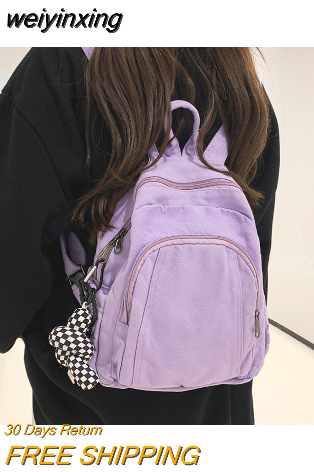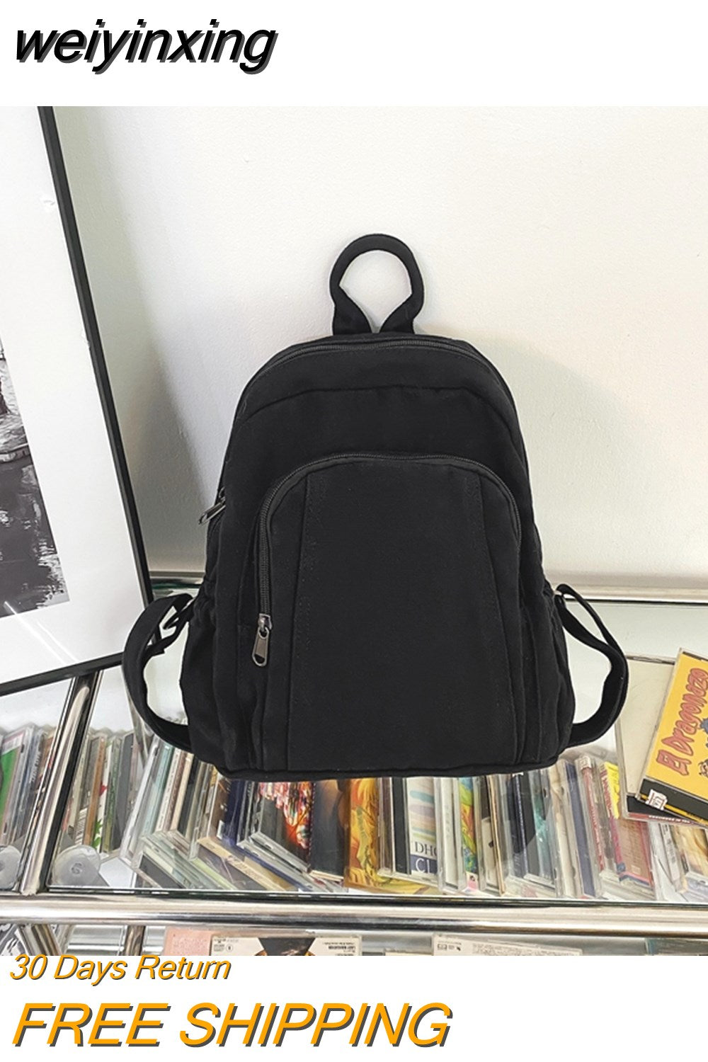 weiyinxing New Canvas Women Backpack Female Solid Color Multifunction Small Backpacks Girl Cool Travel Bag Mini Schoolbag Cute Packs