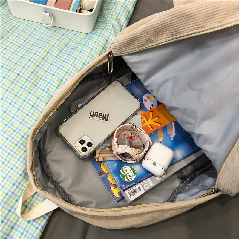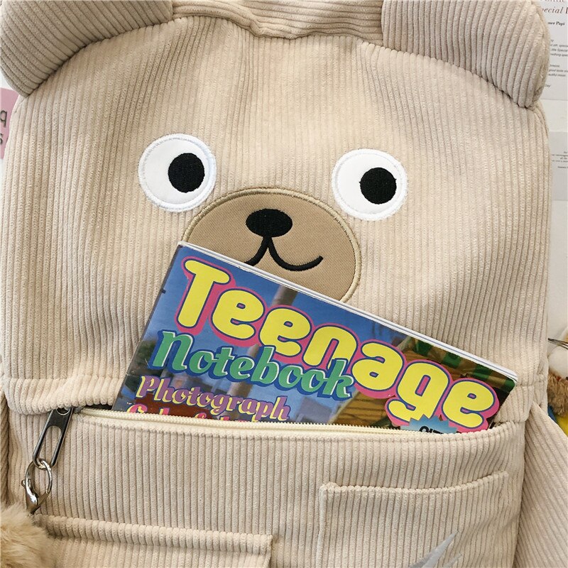 weiyinxing New Corduroy Cute Bear Women Backpack Female Embroidery Big Winter Schoolbag Multi-pocket Travel Bag for Teenage Girls