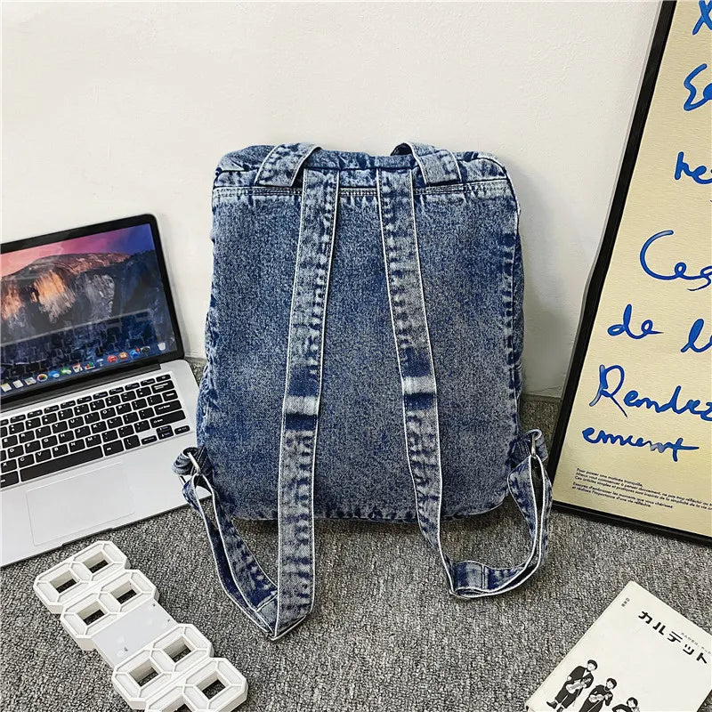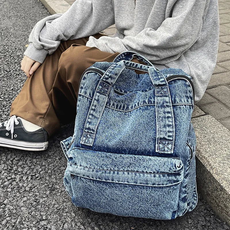 Weiyinxing New Denim Women Backpack Retro Travel Bagpack Large Capacity Backbag College Student School Bags for Teenager Girls Rugtas