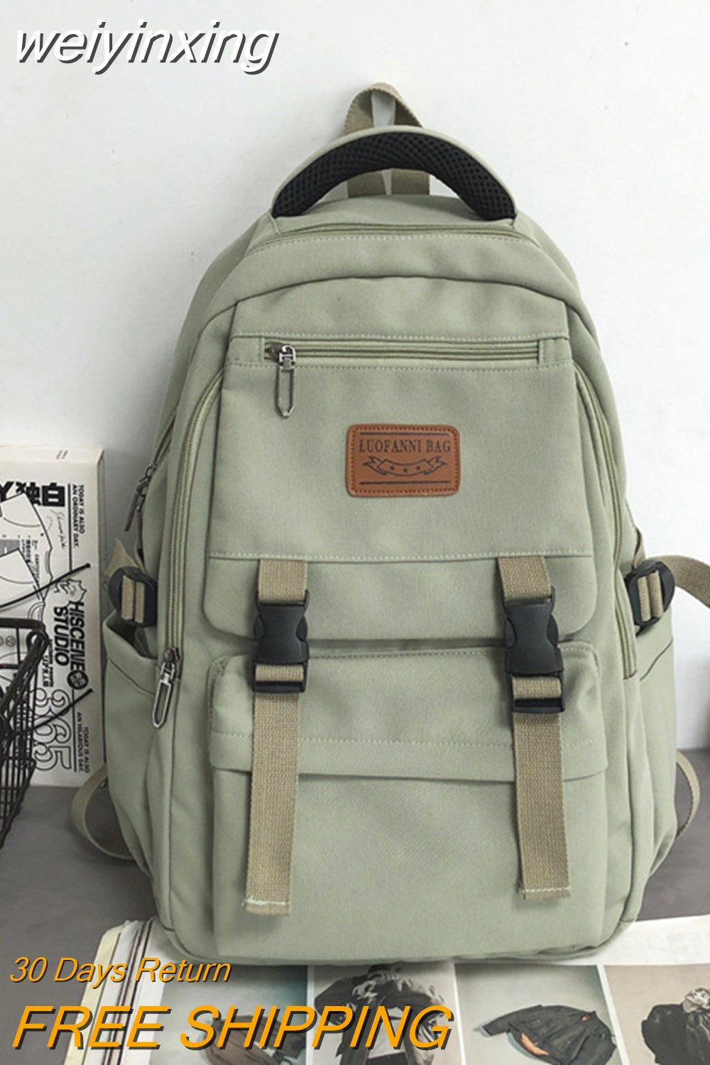 weiyinxing New Large Capacity Insert Buckle Nylon Backpack Unisex Fashion Travel Bag College Couples Schoolbag Girls Laptop Backpack
