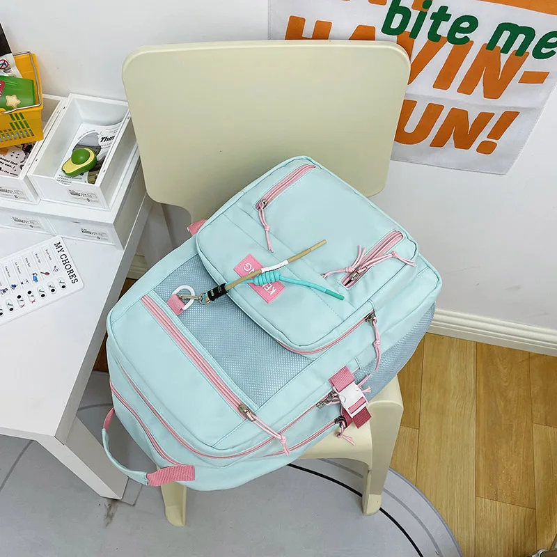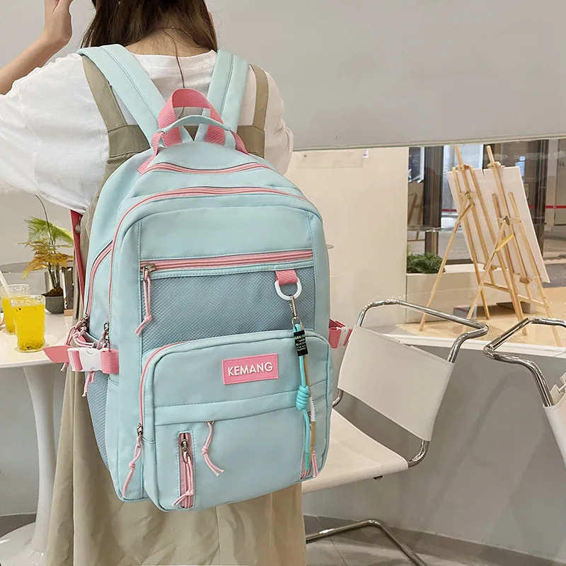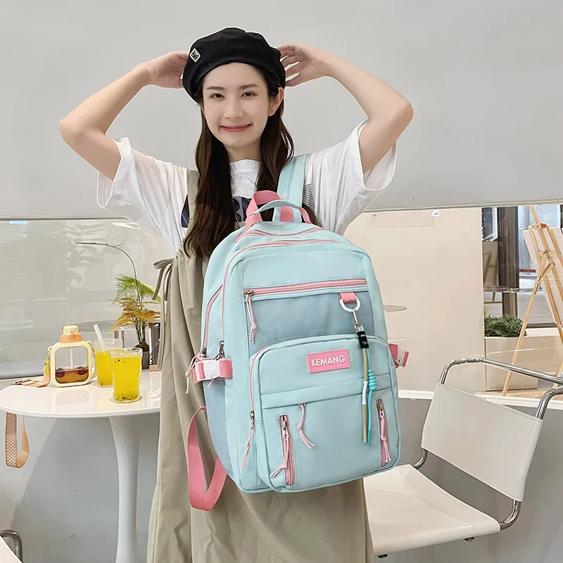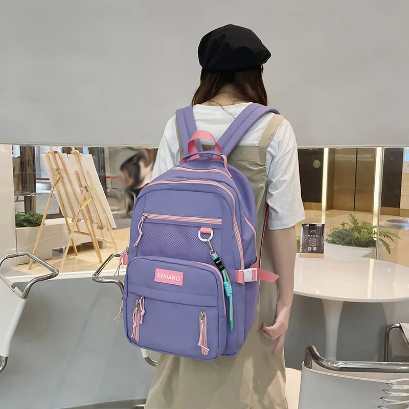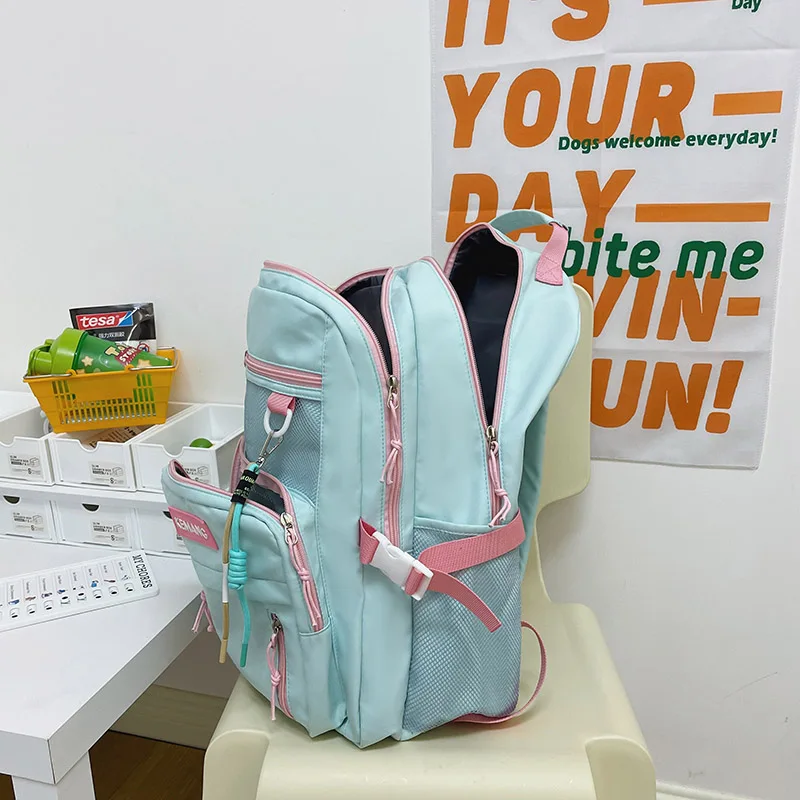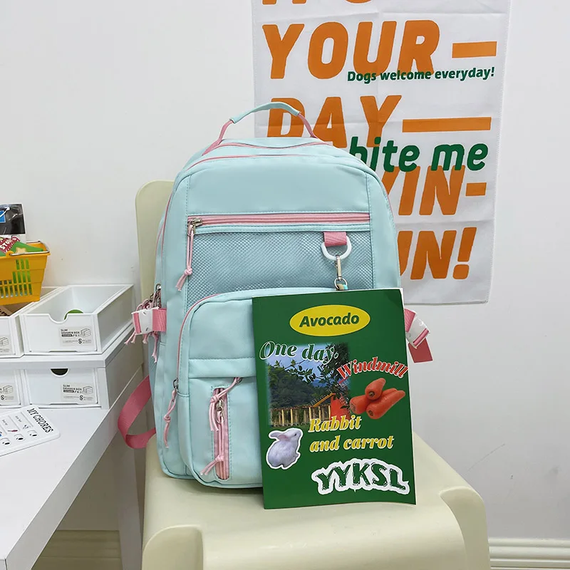 weiyinxing New Mesh Waterproof Nylon Women Backpack Female Kawaii Multiple Pockets Travel Bag Teenage Girls Big Schoolbag Laptop Bag