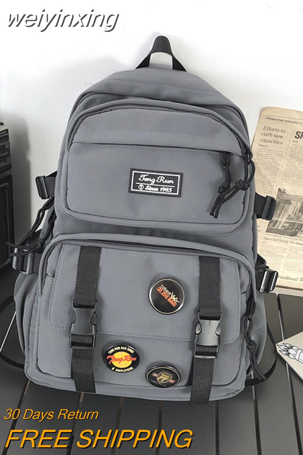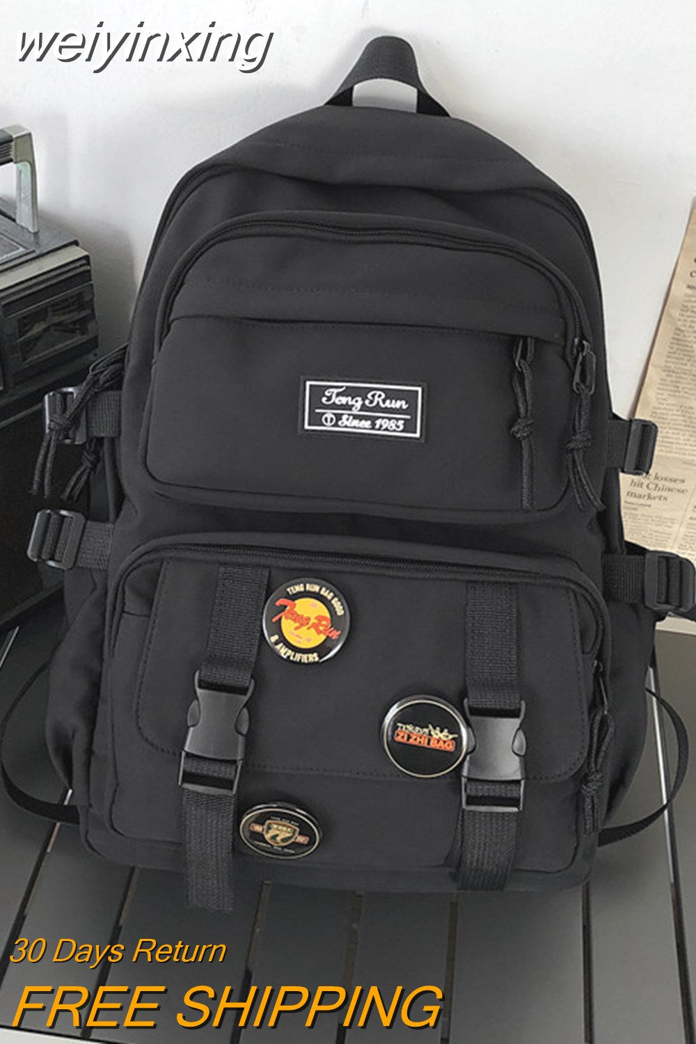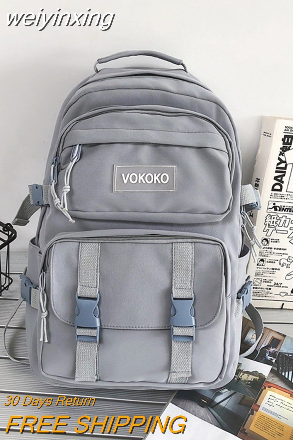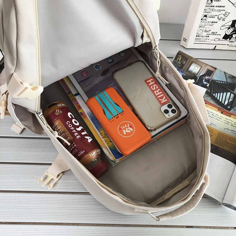 weiyinxing New Multi-pocket Waterproof Nylon Backpack Large Capacity Solid Color Women Schoolbag Men Insert Buckle Laptop Backpacks