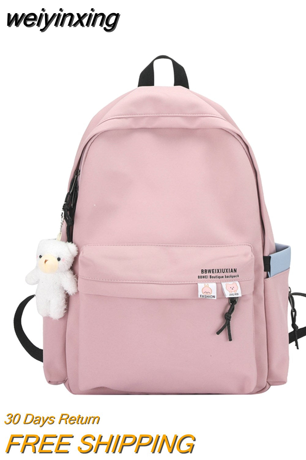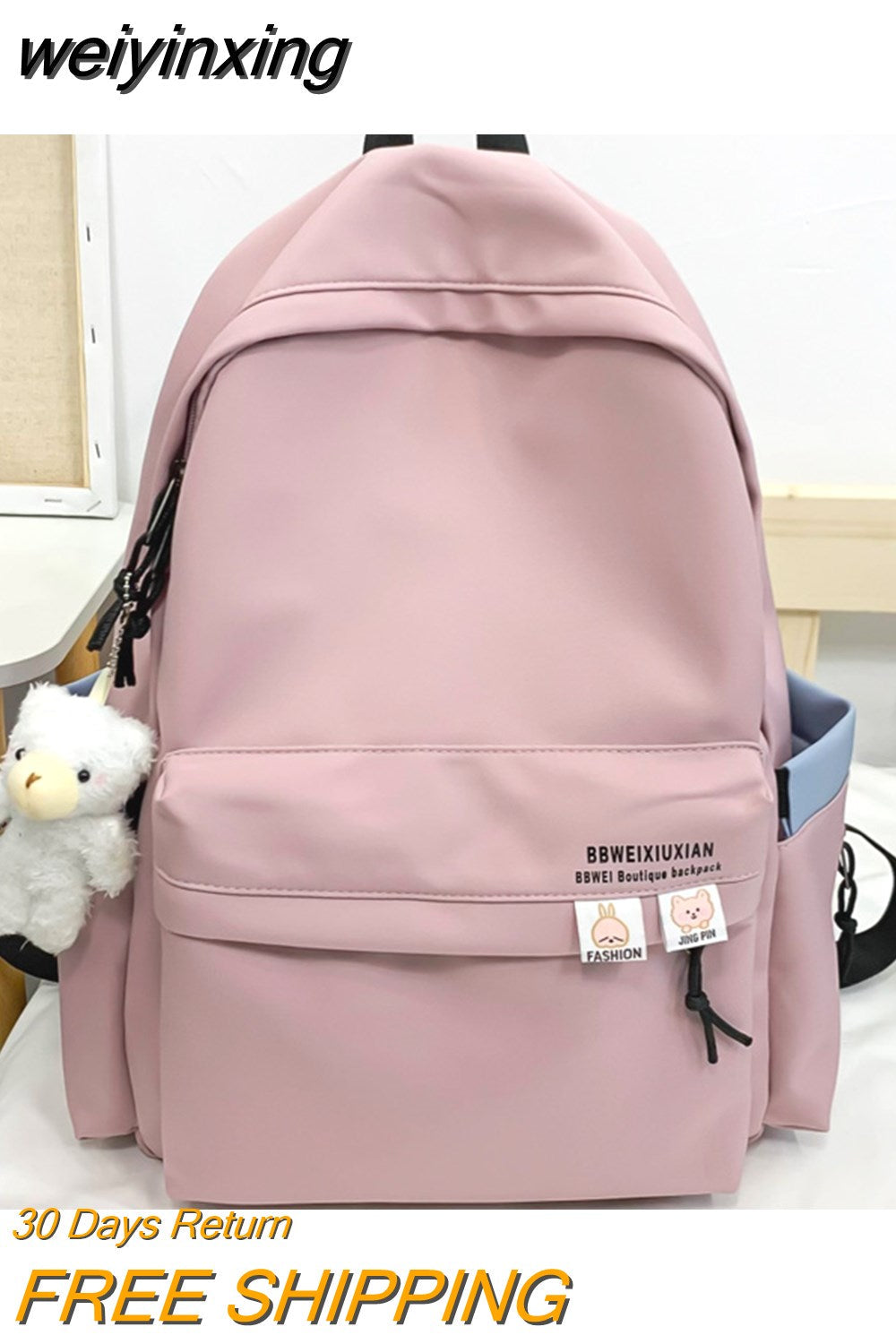 weiyinxing New Nylon Women Backpack Female Letter Printing Portable Travel Bag Preppy Girl Student Schoolbag Pink Backpack Bookbag