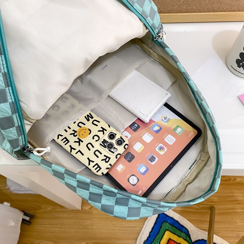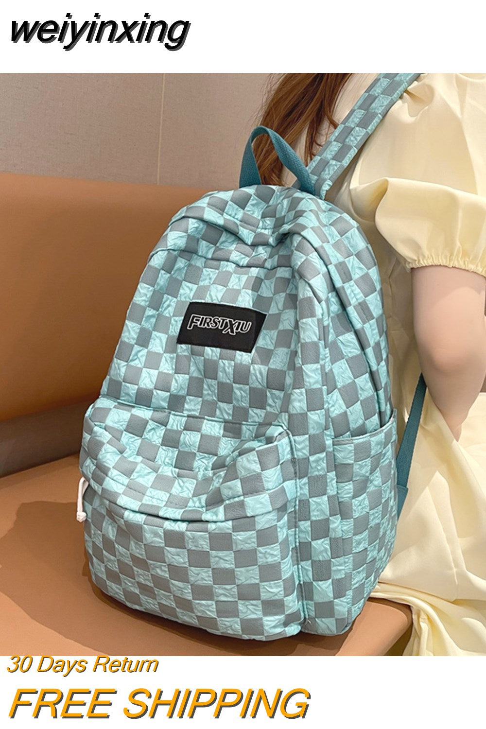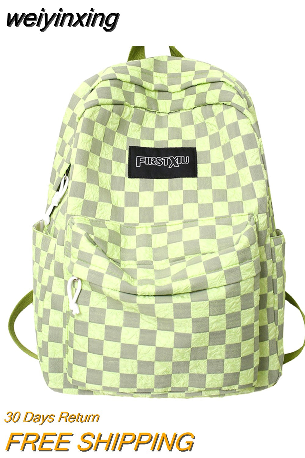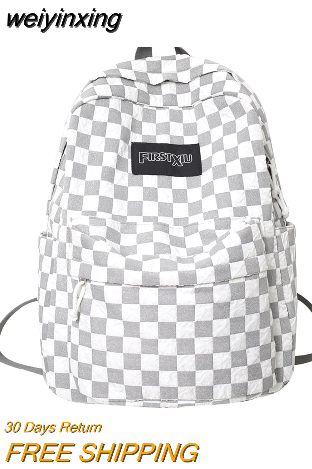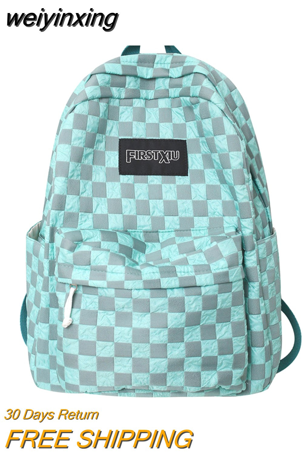 weiyinxing New Plaid Women Backpack Kawaii Girl Nylon Travel Bag Fashion Waterproof Bookbag College Students Cool Schoolbag Mochilas