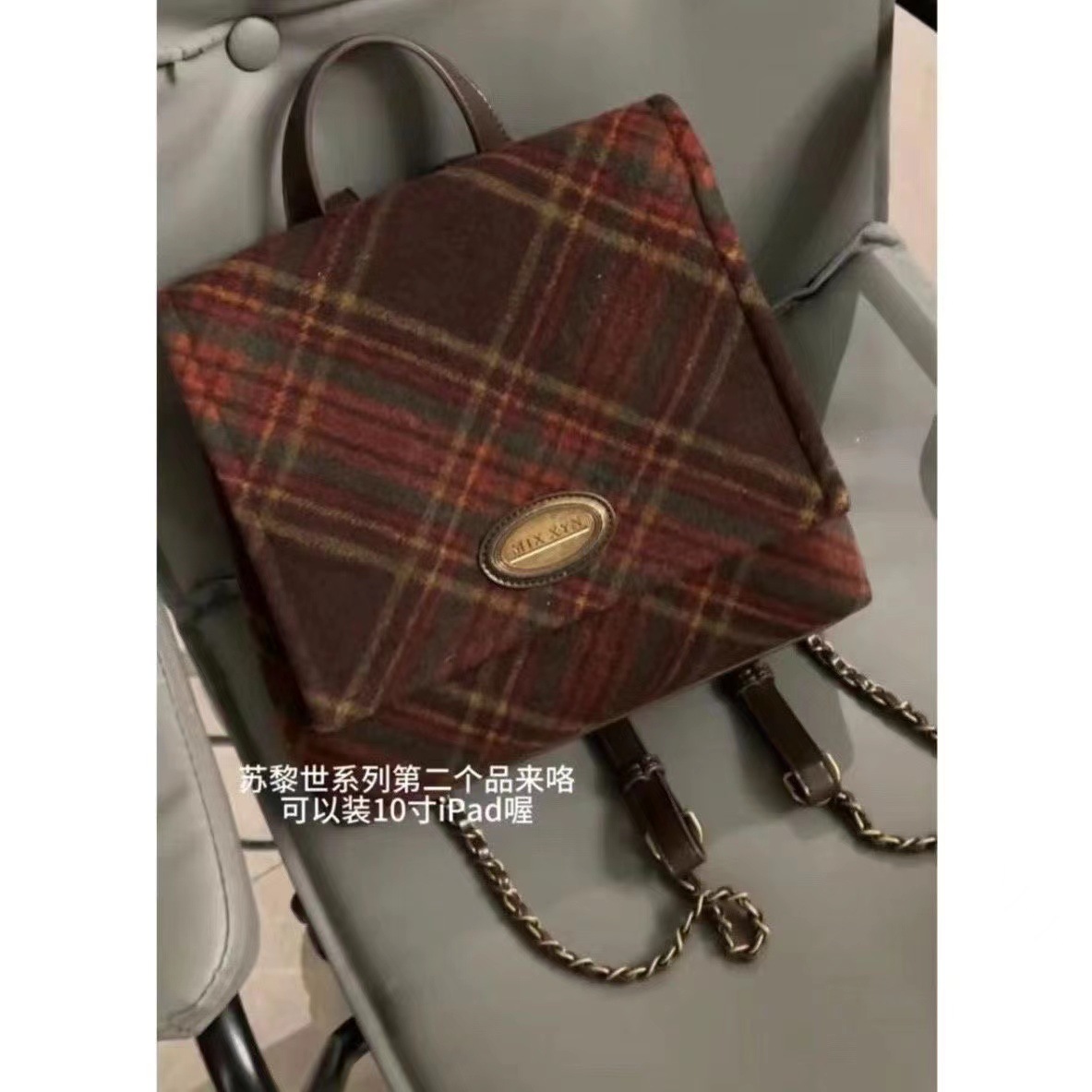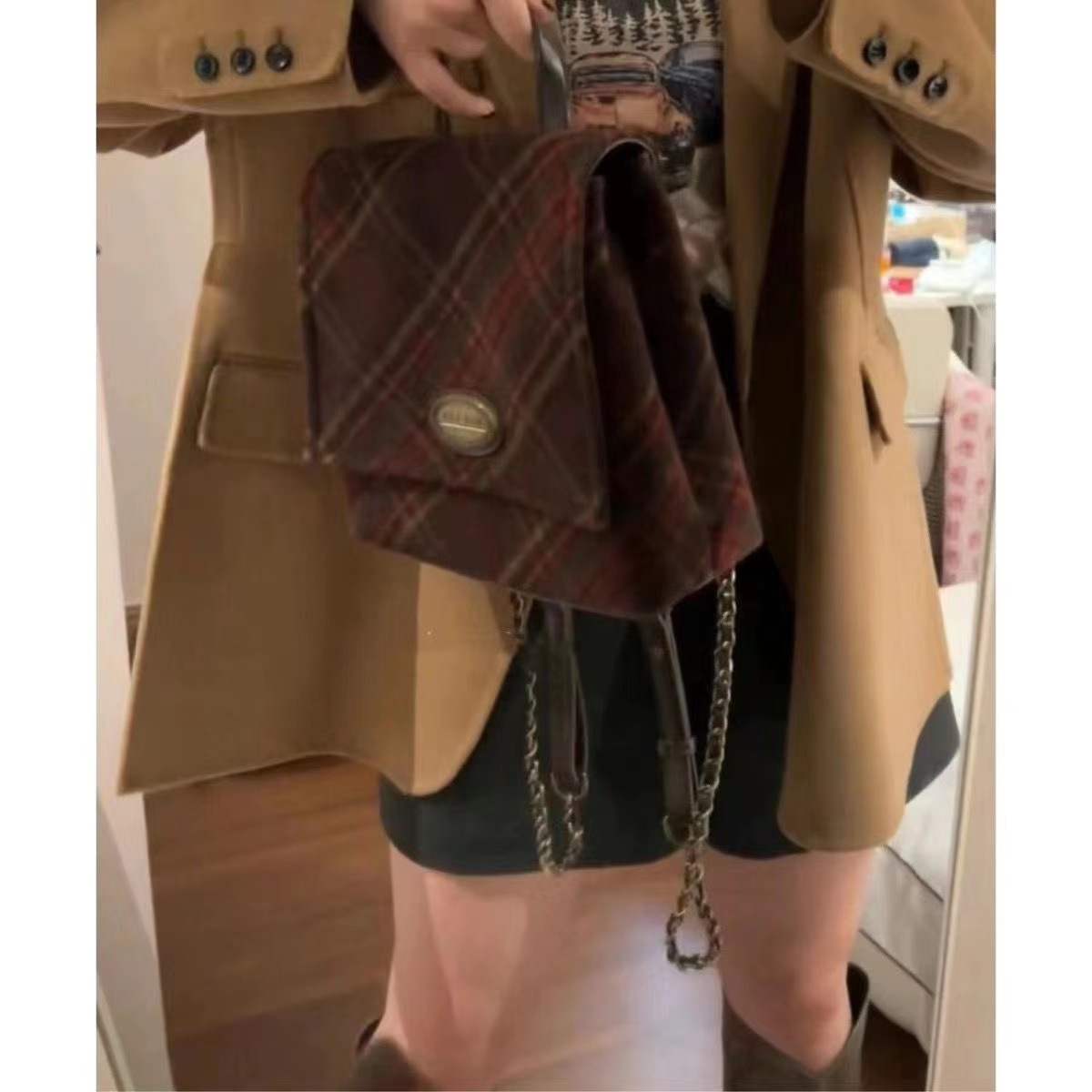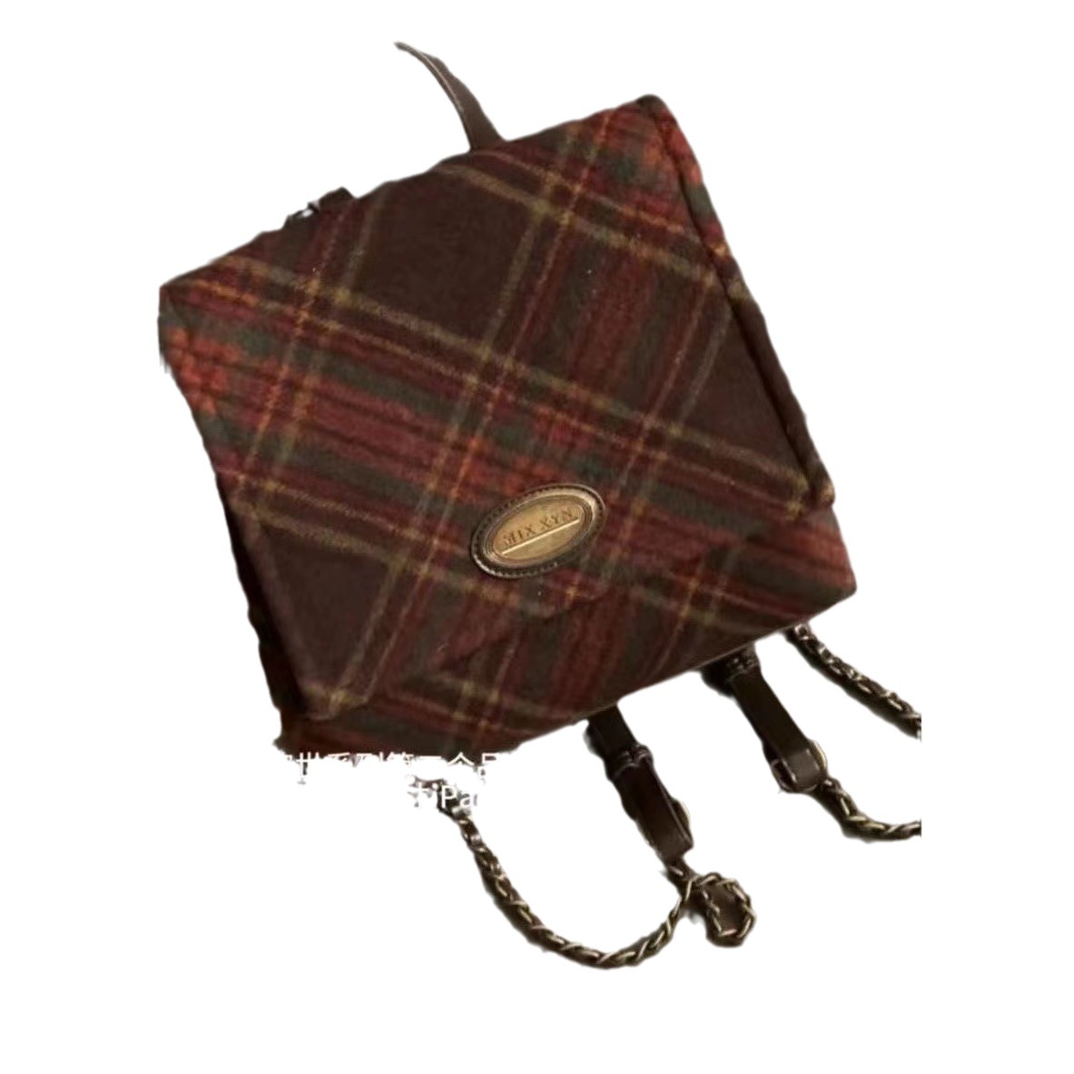 Weiyinxing Original Design Autumn And Winter Unique Retro Red And Green Checkered Backpack Advanced Texture Handheld Backpack Practical