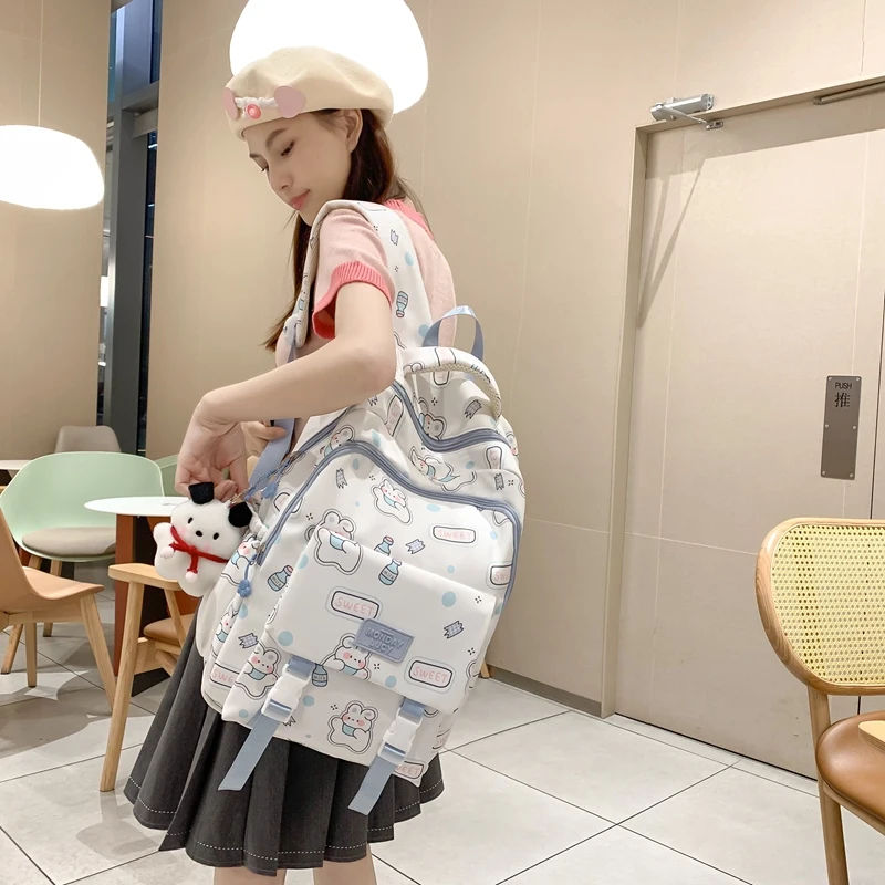 Weiyinxing Printing Kawaii Lady Waterproof Student Backpack Cute Laptop Female Travel College BookBag Girl School Bag Women Fashion