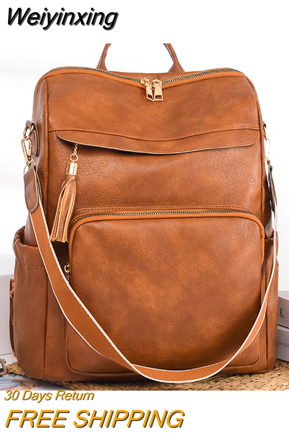 Weiyinxing Pu Leather Backpack Women Vintage Shoulder Bag Ladies High Capacity Travel Backpacks School Bags Girls Mochila Feminina