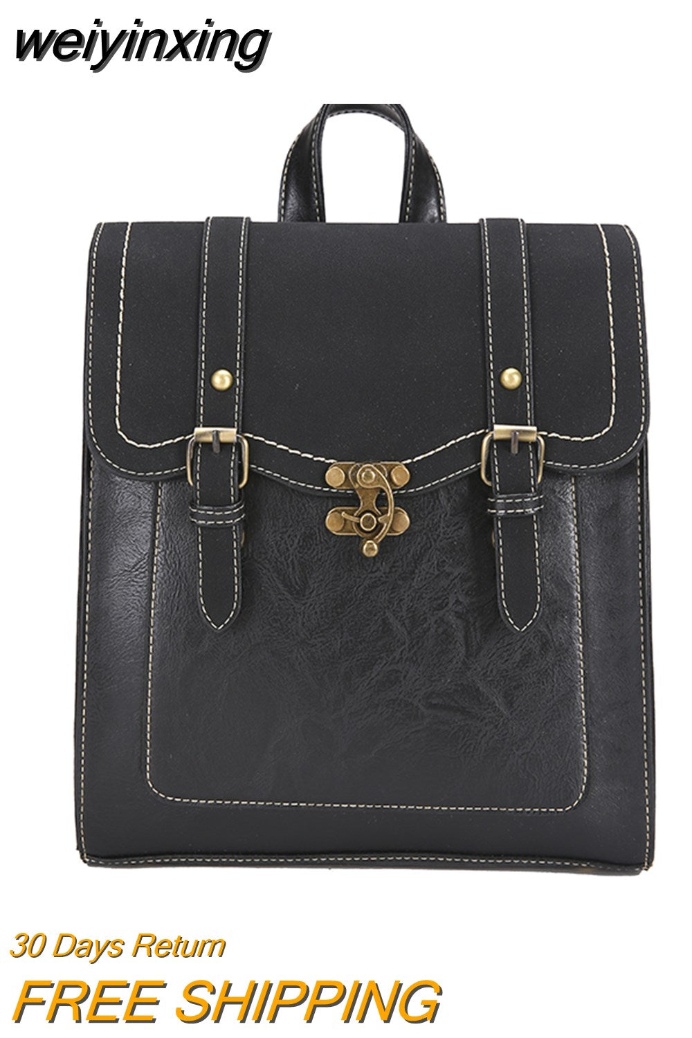 weiyinxing Pu Leather Women Backpack Preppy Style Backpacks Fashion School Bag College Girl Backpack Shoulder Bags Mochila Feminina