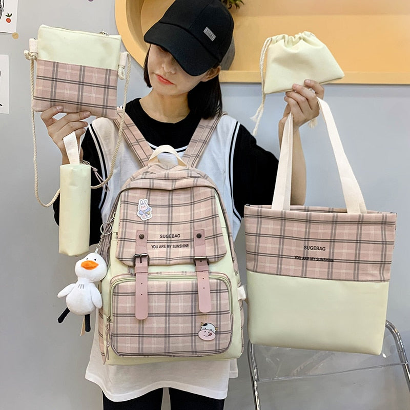 Weiyinxing Set Women Backpack Harajuku Nylon School Bags For Teenage Girls Boys Kawaii College Student Kids Book Bagpack Laptop Rucksack
