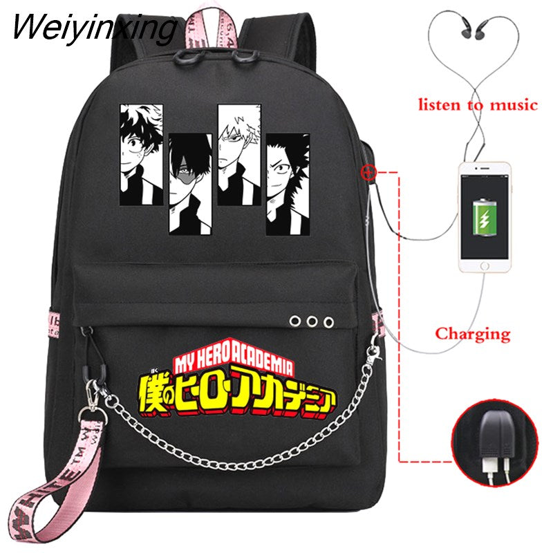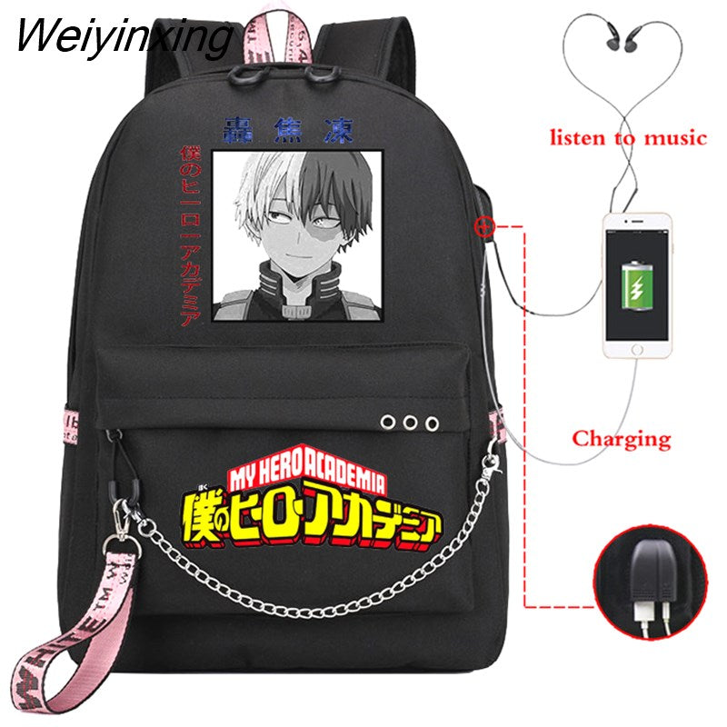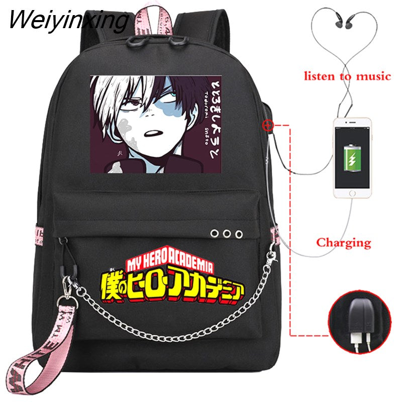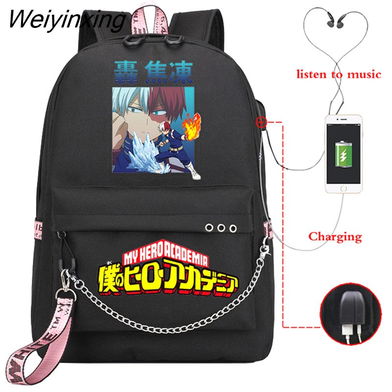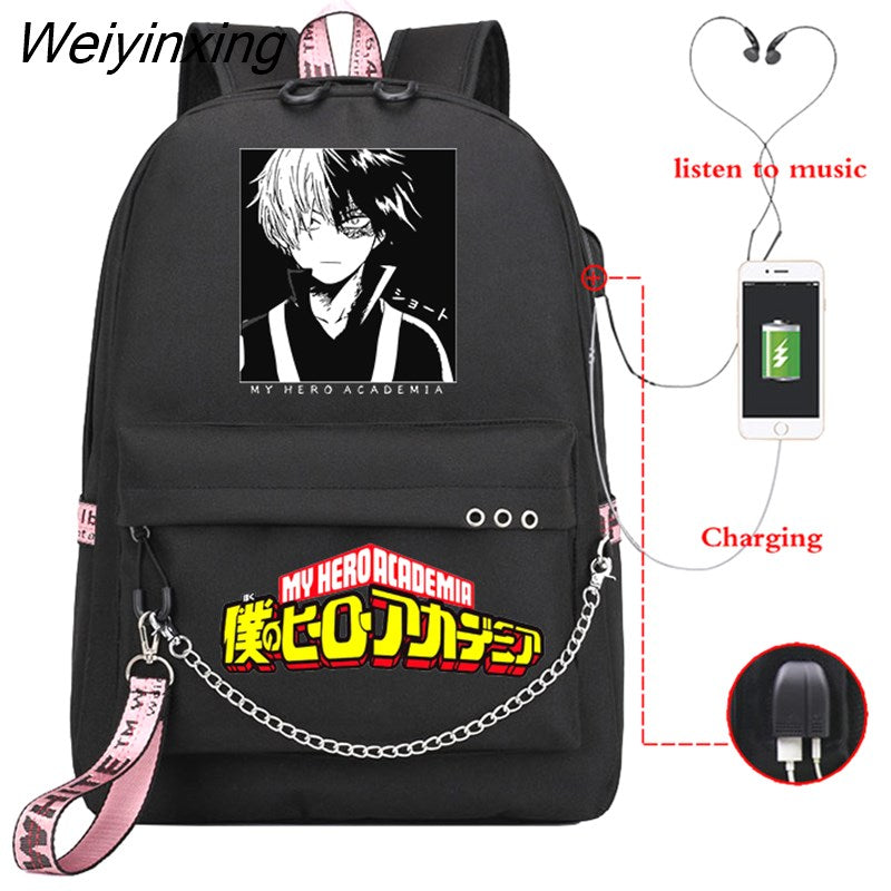Weiyinxing Shoto Todoroki Boku No Hero Academia Book Bag Usb Charging Designer Backpack My Hero Academia Girls School Bag Mochila