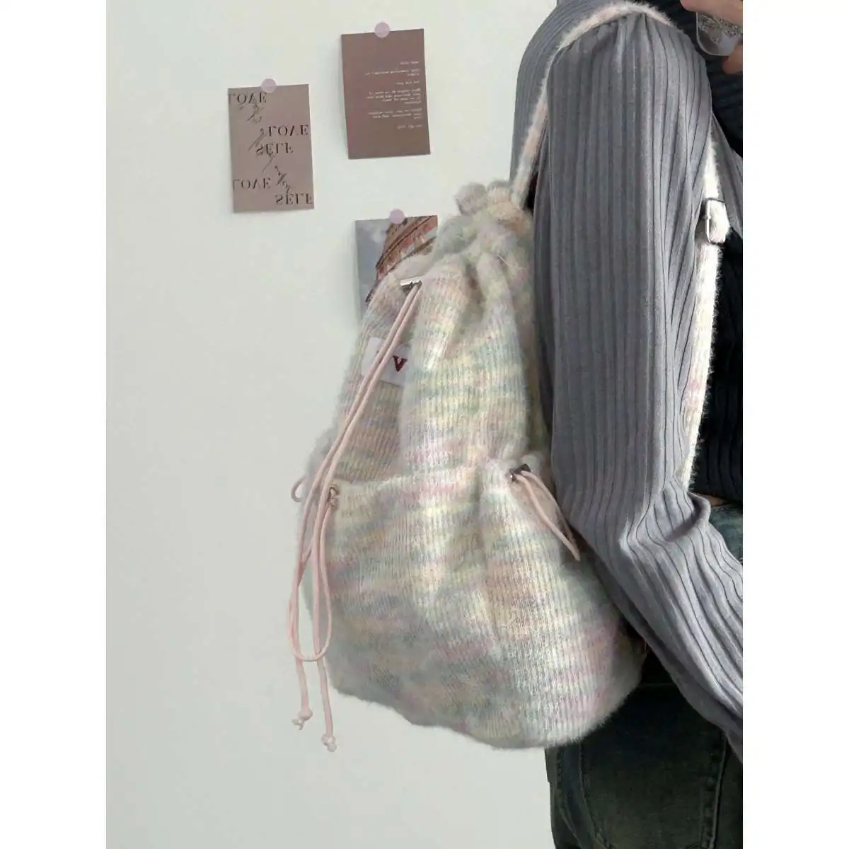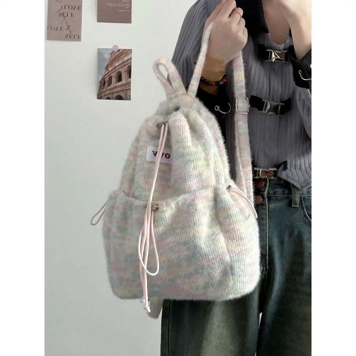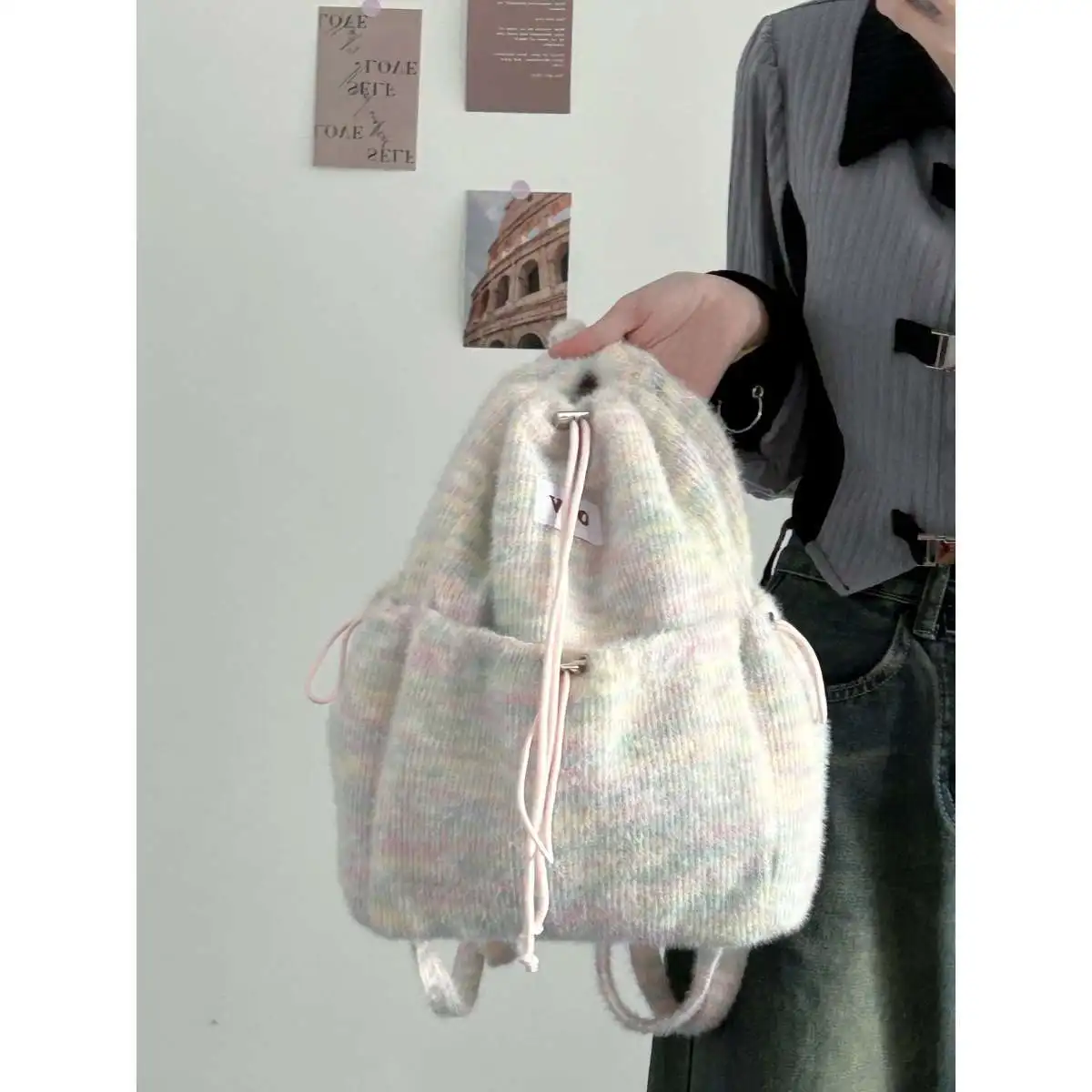 Weiyinxing Small Candy Plush Backpack for Students Class 2024 Autumn/Winter New Girls Korean Fashion Versatile Book Bag