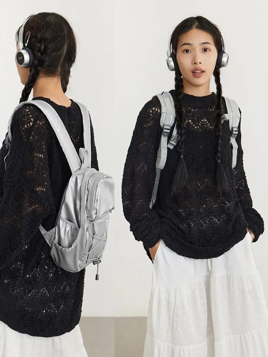 Weiyinxing Small Silver Mountaineering Bag Picnic Bag Causal Students Book Bag 2024 New Fashion Korean Girls Y2k Backpack