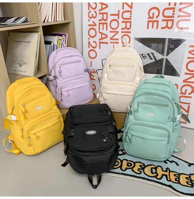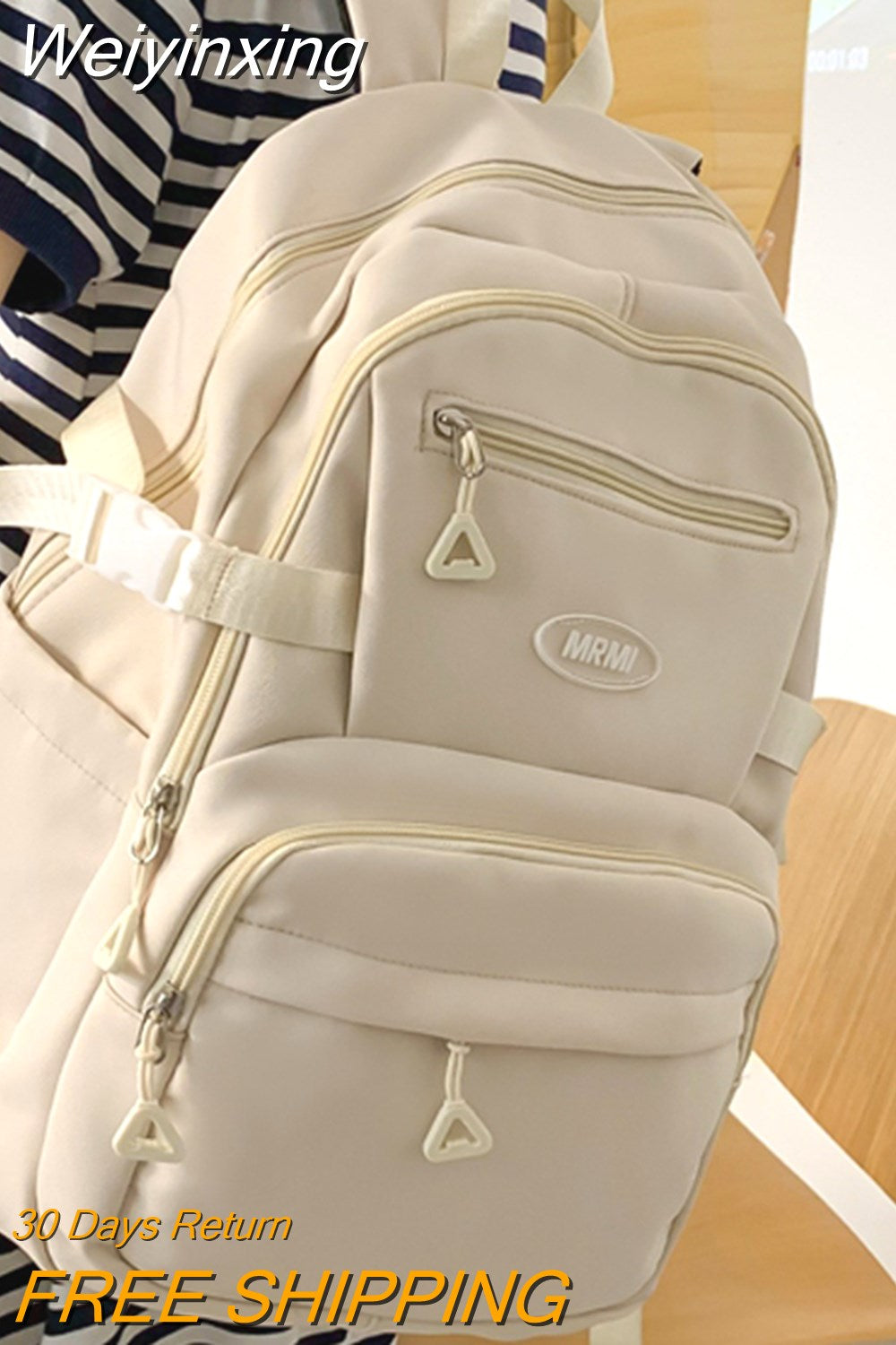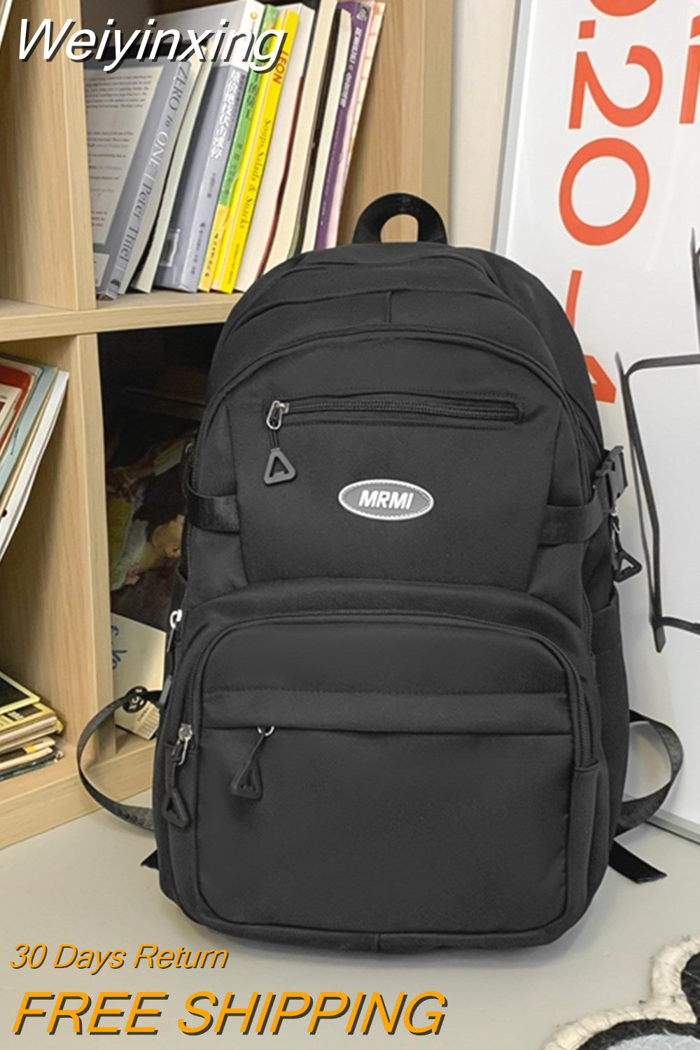 Weiyinxing Solid Color Waterproof Nylon Women Backpack Men Large Capacity Laptop Back Bag Unisex Travel Rucksack Schoolbag New