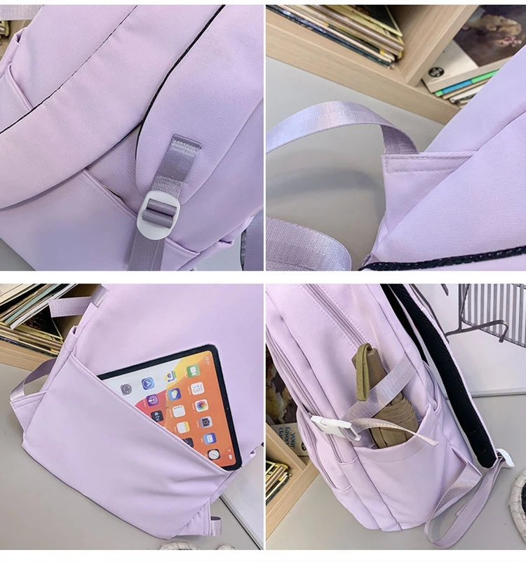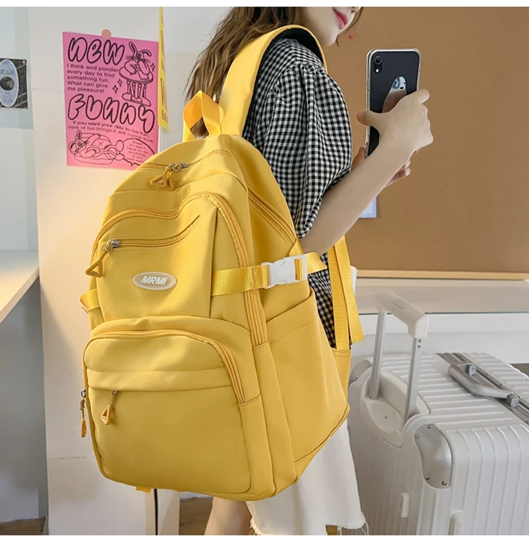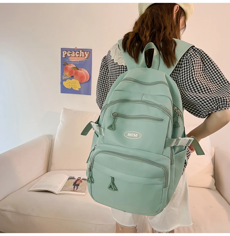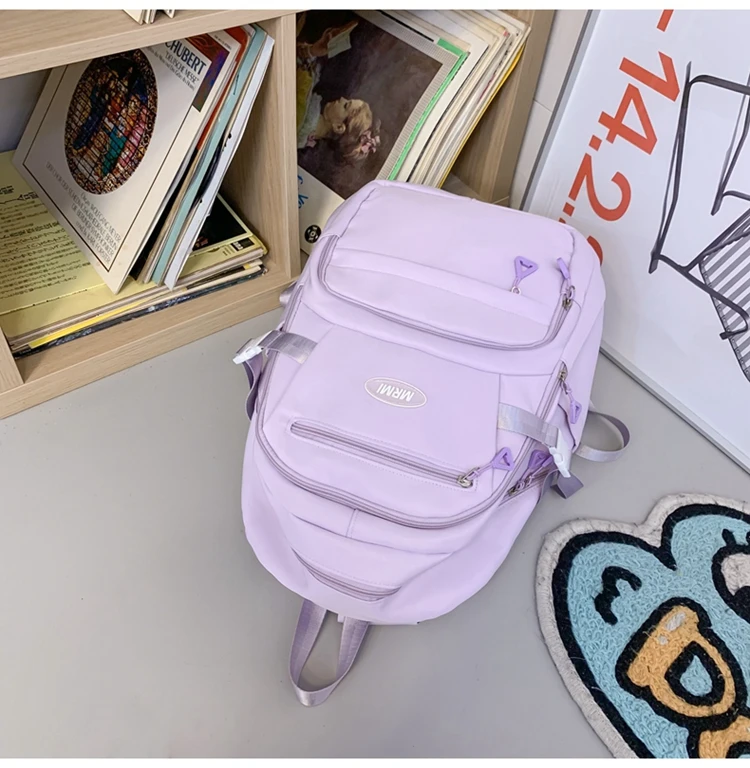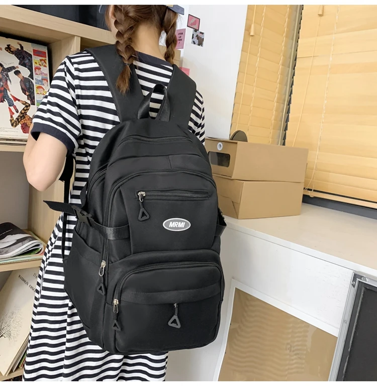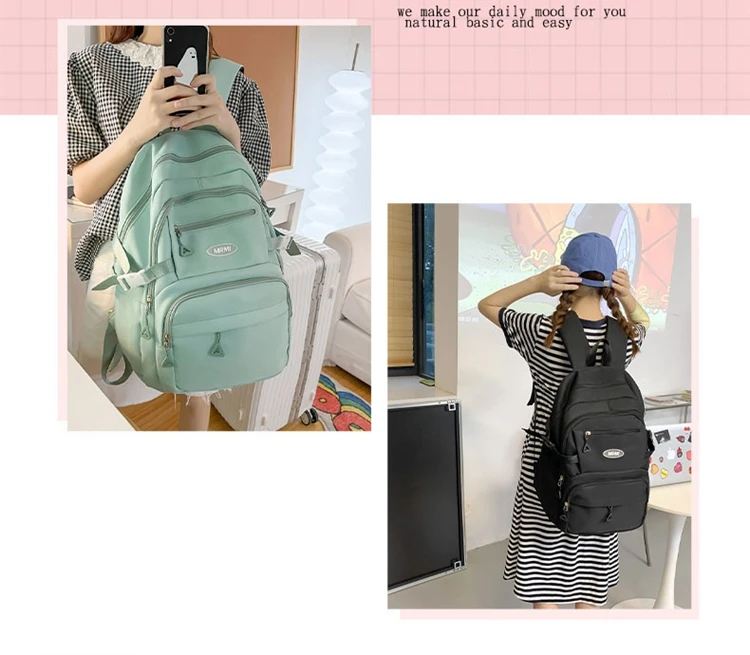 Weiyinxing Solid Color Waterproof Nylon Women Backpack Men Large Capacity Laptop Back Bag Unisex Travel Rucksack Schoolbag New