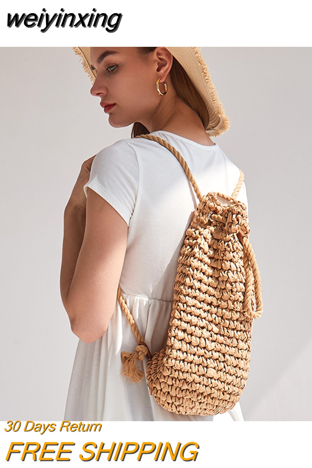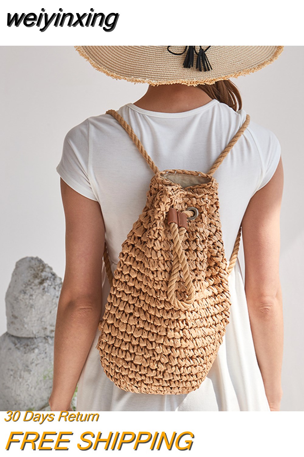 weiyinxing Straw Backpack for Women Handmade Drawstring Beach Shoulder Bags Raffia Rattan Woven Travel Handbags bali lady backpacks