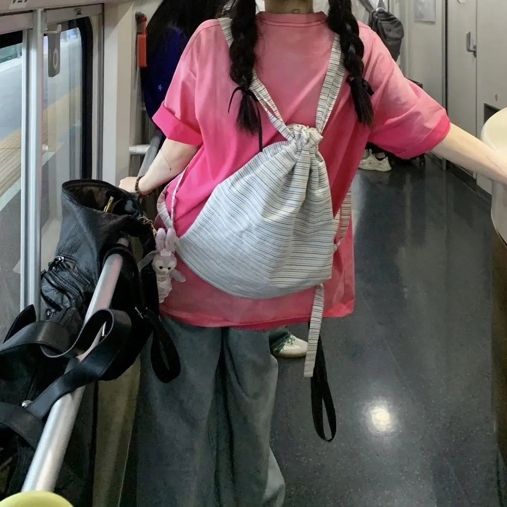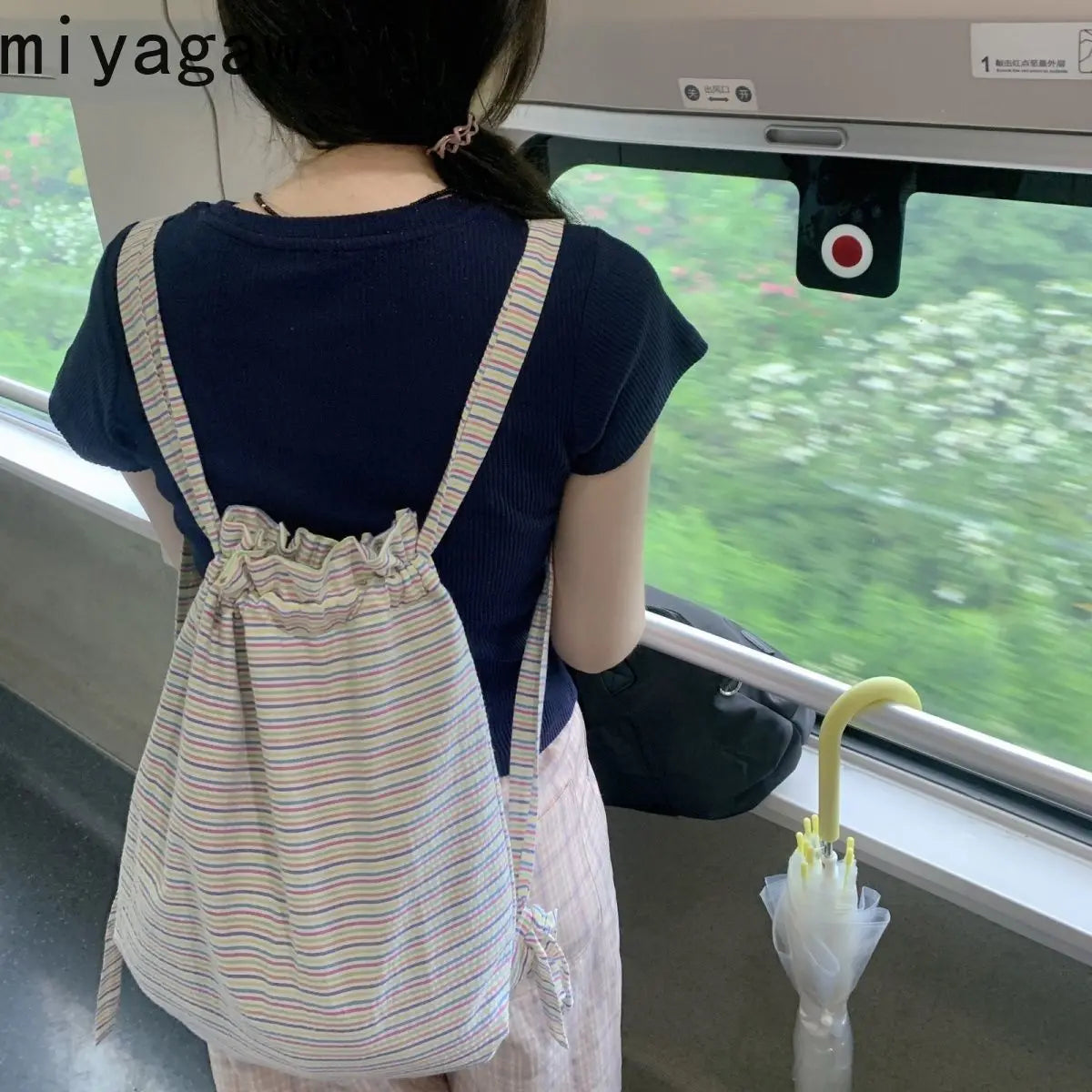 Weiyinxing Striped Cute Drawstring Backpack Causal Japanese Korean Style Shoulders Bag 2024 New Spicy Girl Y2k Backpacks