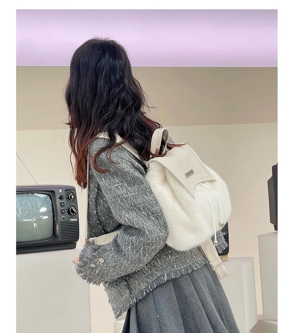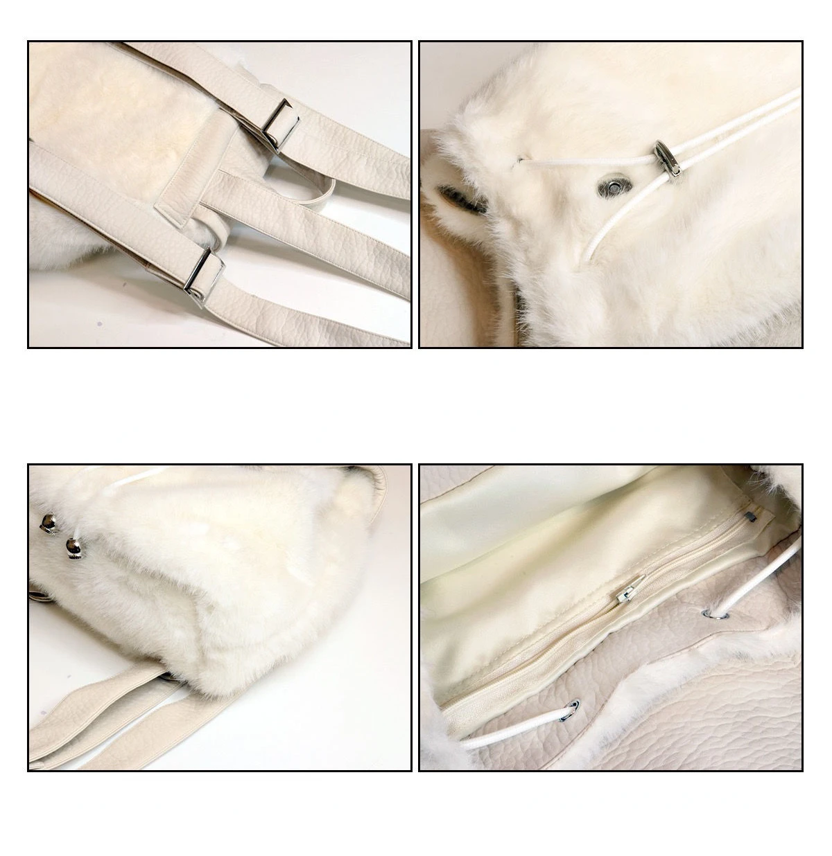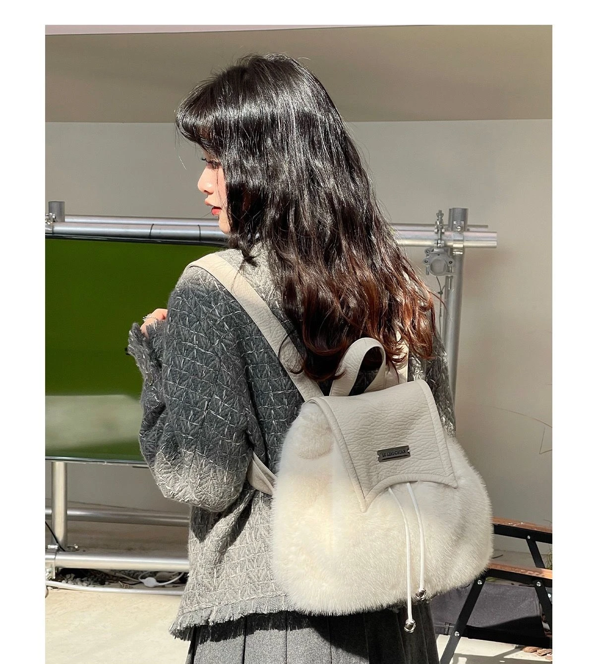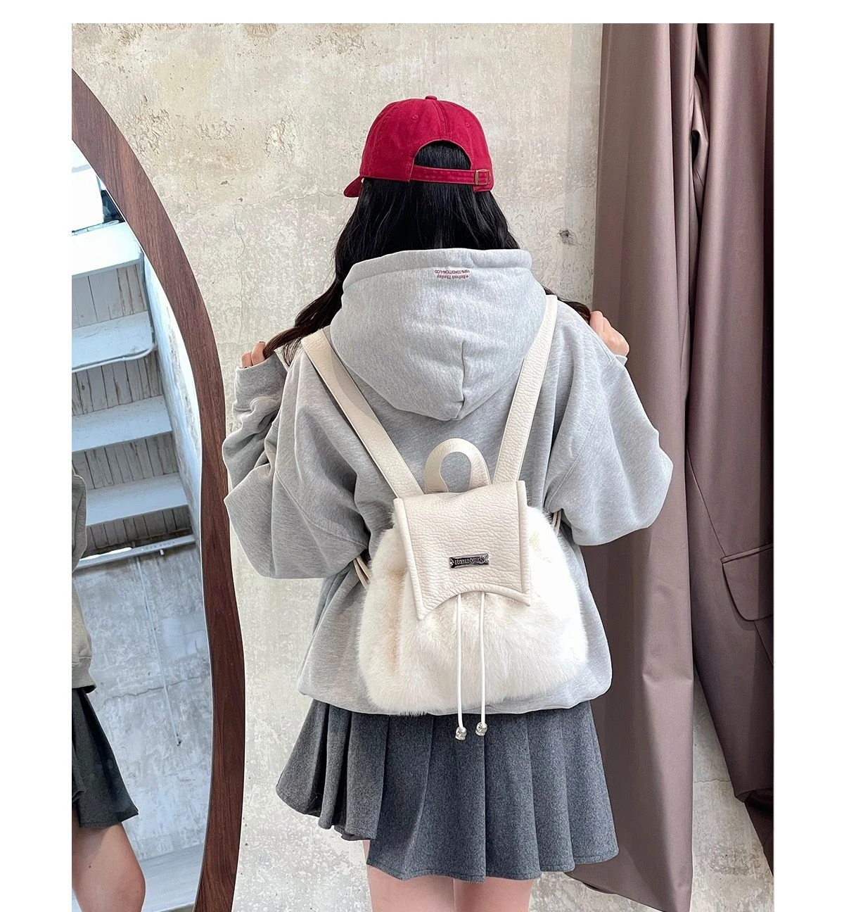 Weiyinxing Sweet Cute Soft Plush Shoulder Bag White Harajuku Style Drawstring Backpack New Large Capacity Elegant Literary Handbag