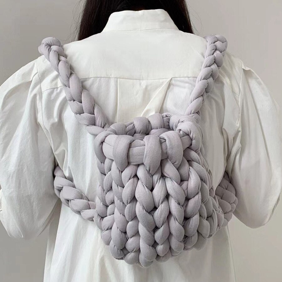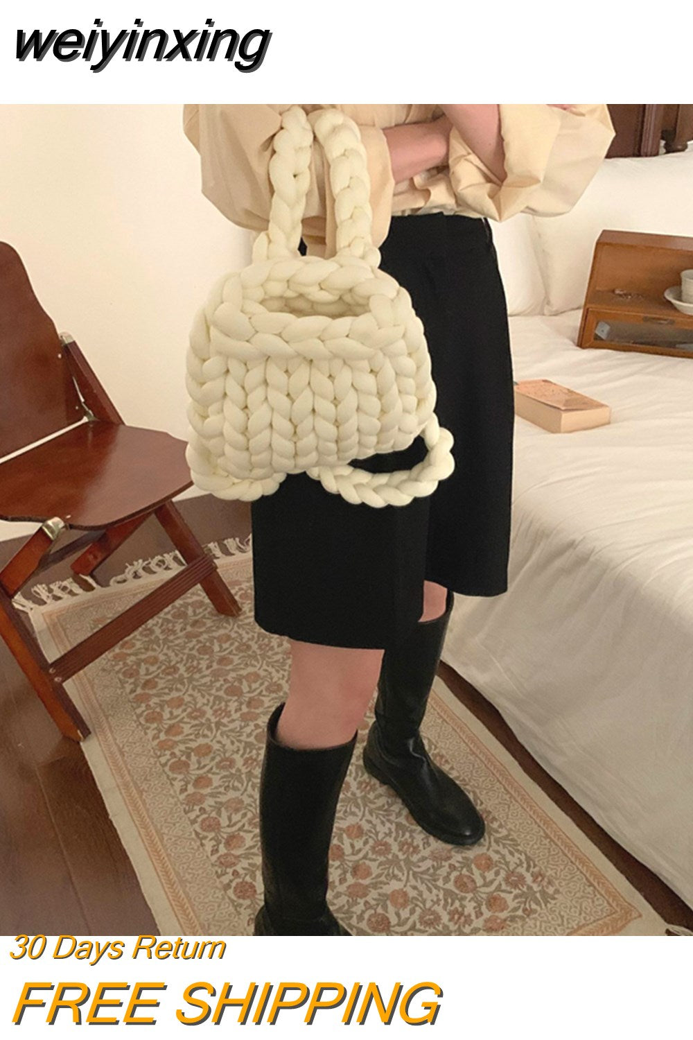 weiyinxing Thick Woolen Backpacks for Women Designer Crochet Back Packs Candy Color Knitted Shoulder Bags Casual Travel Bag Winter 0409