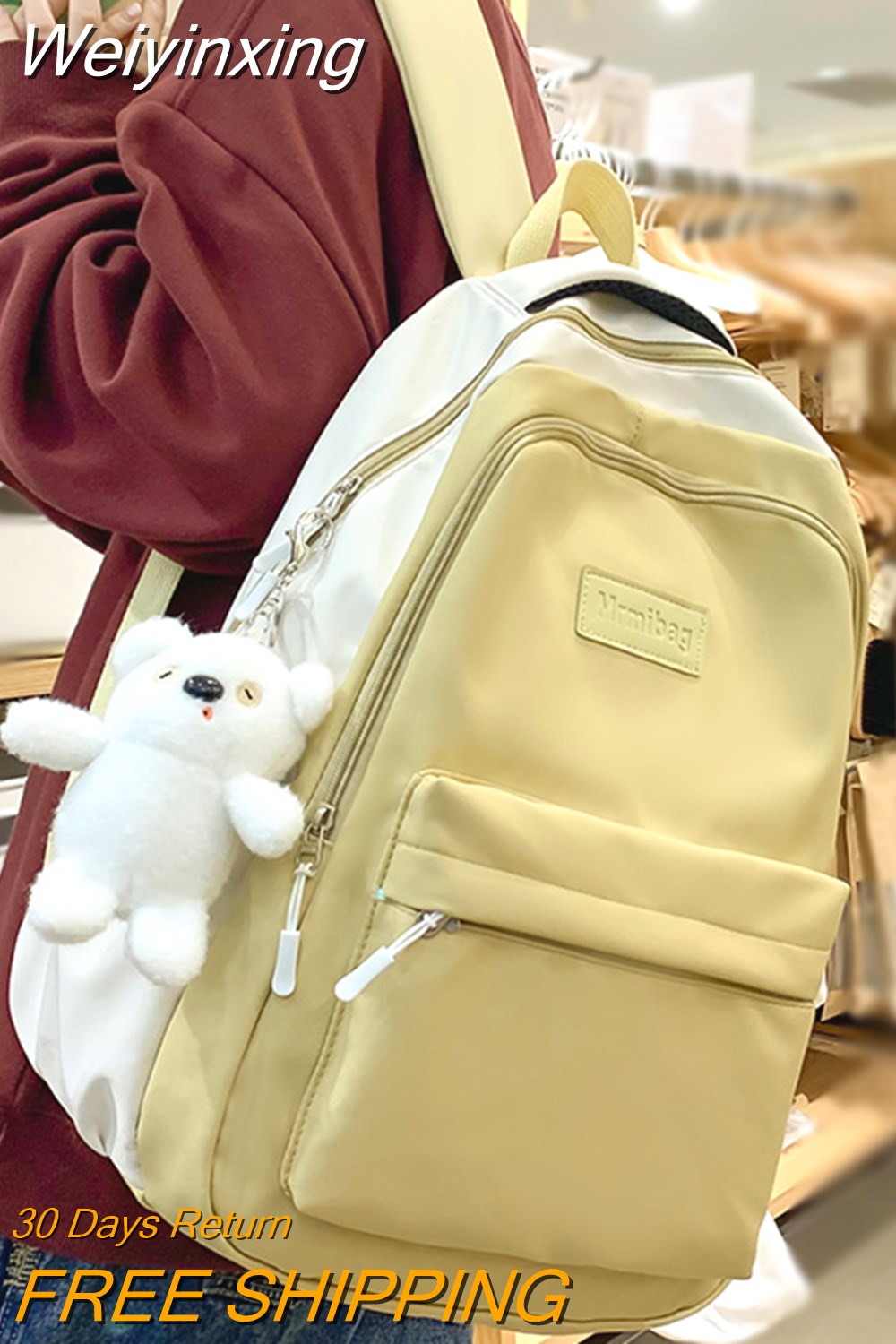 Weiyinxing Travel Waterproof Yellow Leisure School Bag Fashion Women Student Backpack Ladies Nylon Cute Book Female Laptop College Bag