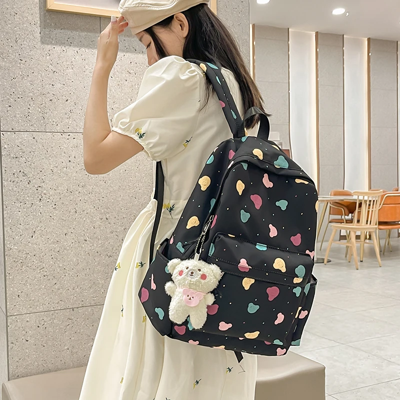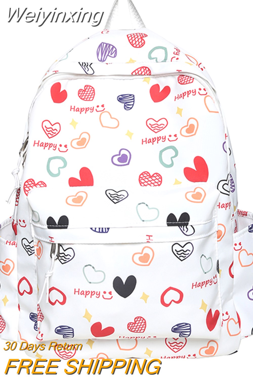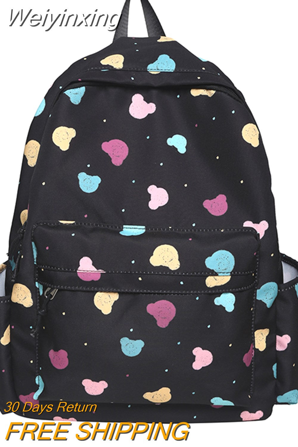 Weiyinxing Trendy Cute Cartoon Printing College Backpack New Girl Travel Nylon Book Bag Female Laptop Fashion Women Kawaii School Bags