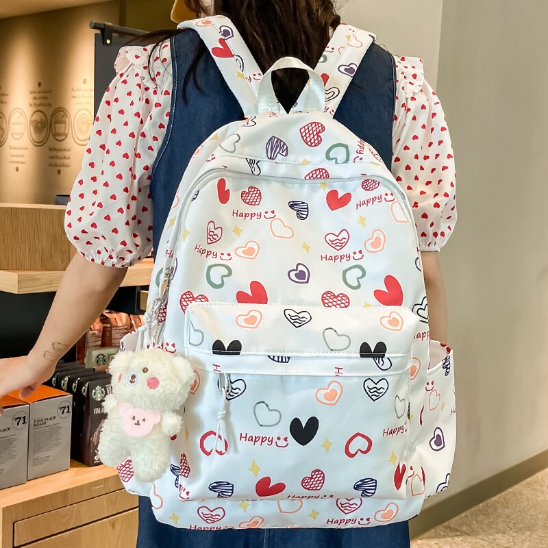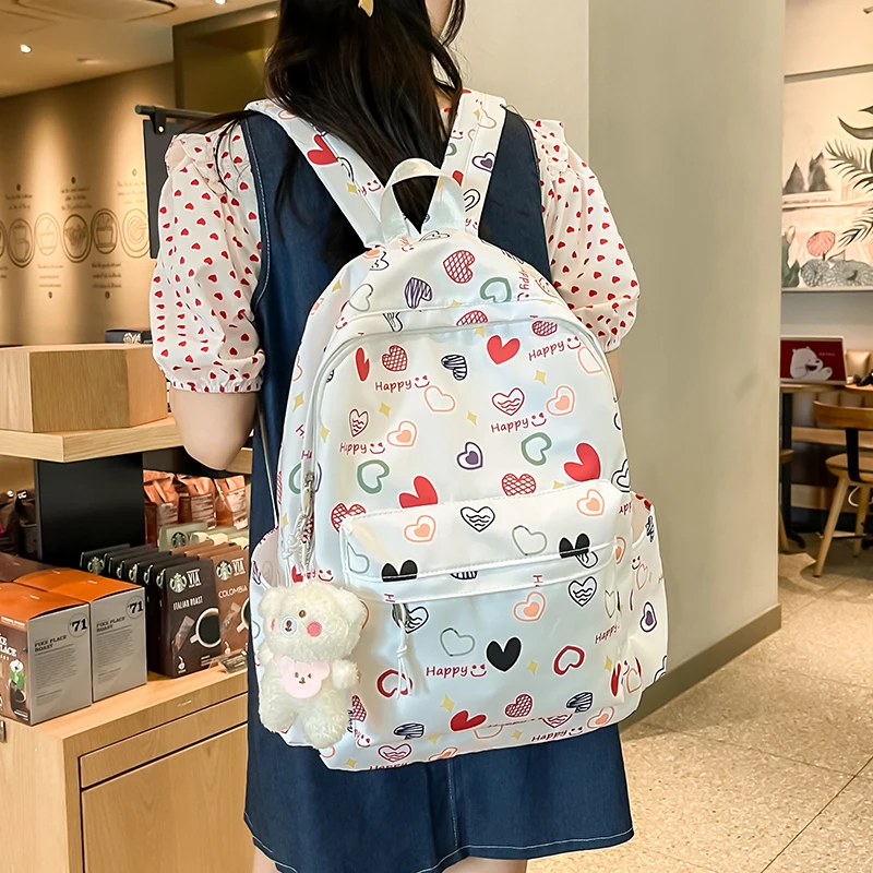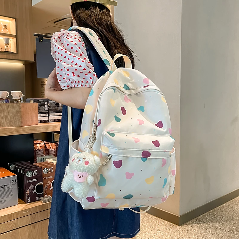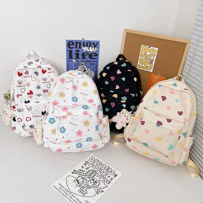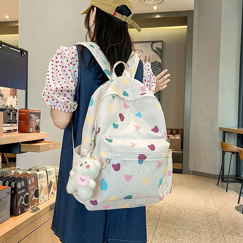Weiyinxing Trendy Cute Cartoon Printing College Backpack New Girl Travel Nylon Book Bag Female Laptop Fashion Women Kawaii School Bags
