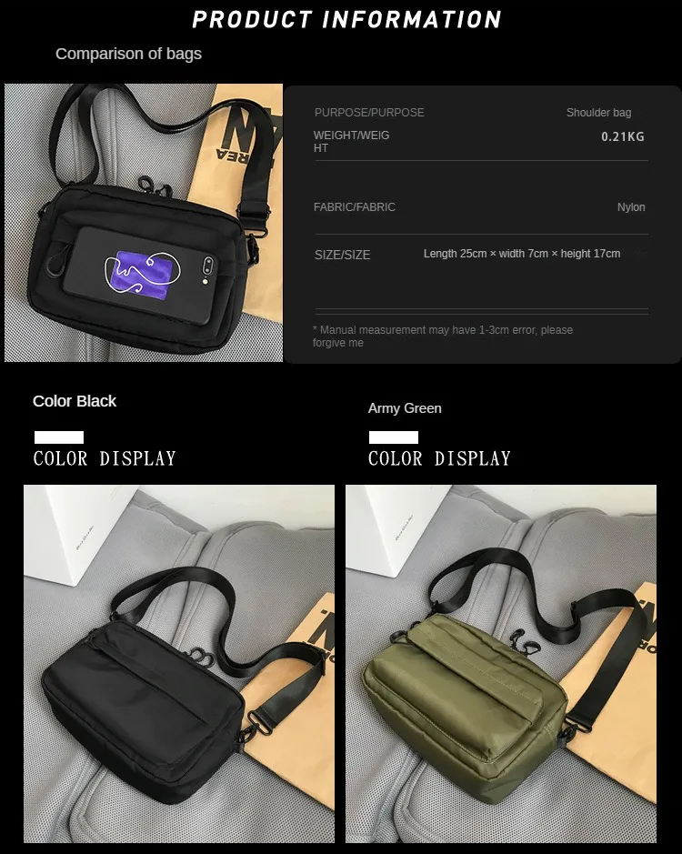 Weiyinxing Unisex Messenger Bag Travel Waist Bag Men's Chest Bag Backpack Casual Men's Shoulder Messenger Bag Nylon Phone Bag Purse