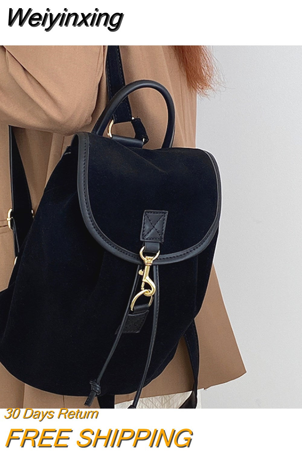 Weiyinxing Velvet Shoulder Bags for Women Small Capacity College Girls Book Backpack School Bag Solid Color Female Travel Handbags