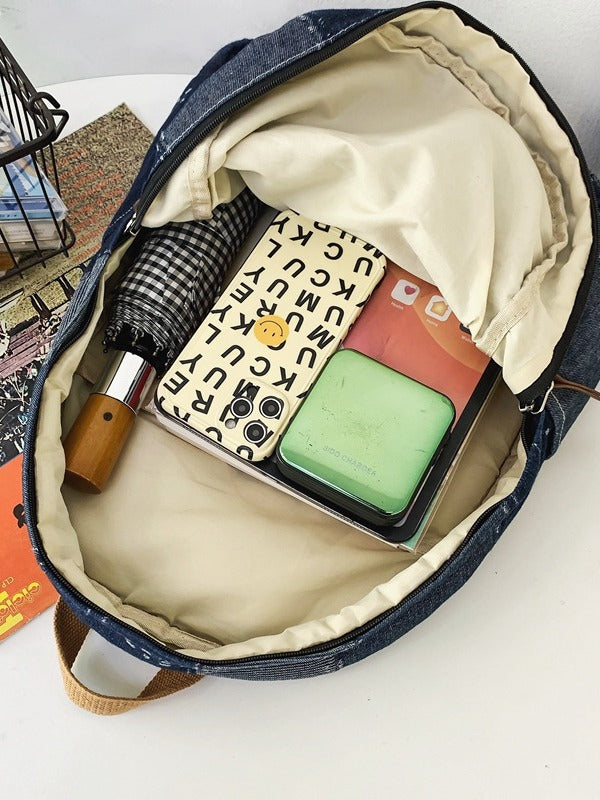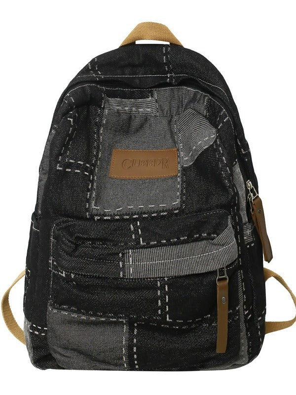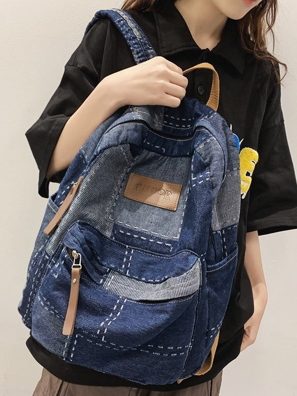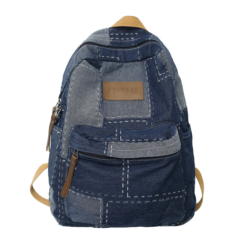 Weiyinxing Version Lazy Cowboy Schoolbag College Style Middle School Students' Backpack Water Washed Retro Spliced Denim Pair