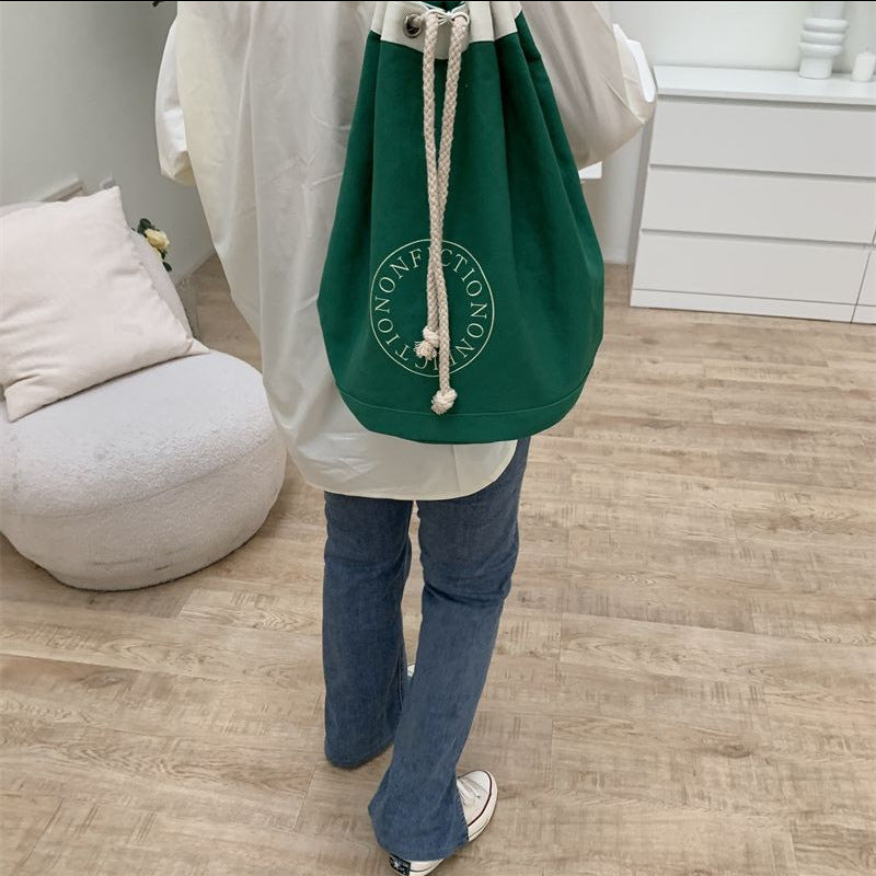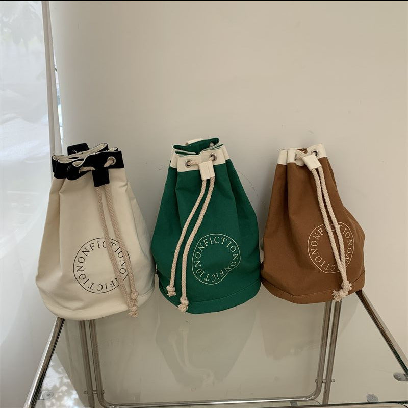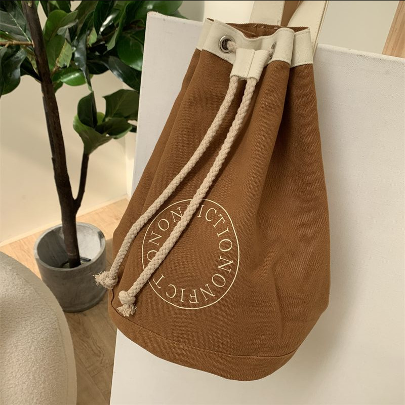 Weiyinxing Version One-Shoulder Slung Backpack Rope Simple Letter Printed Canvas Bag Large-Capacity Shopping Bag Student Bucket Bag