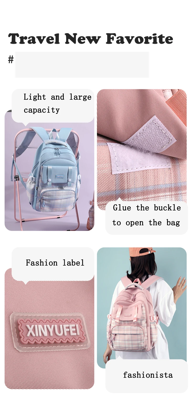 Weiyinxing Waterproof Nylon Student Backpack Fashion School Bags for Teenage Girls Boys Ladies Casual Travel Laptop Rucksack
