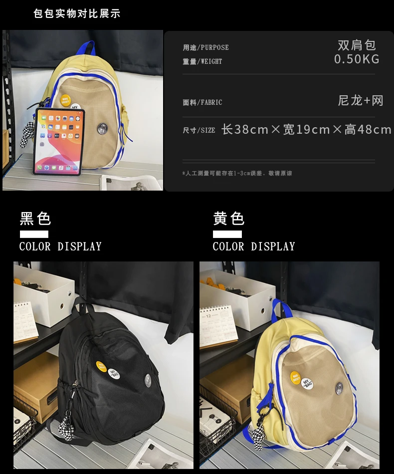 weiyinxing Waterproof Nylon Women Backpack Men Large Capacity Net Travel Bag Unisex Multilayer Laptop Backpack Girl Badge Schoolbag