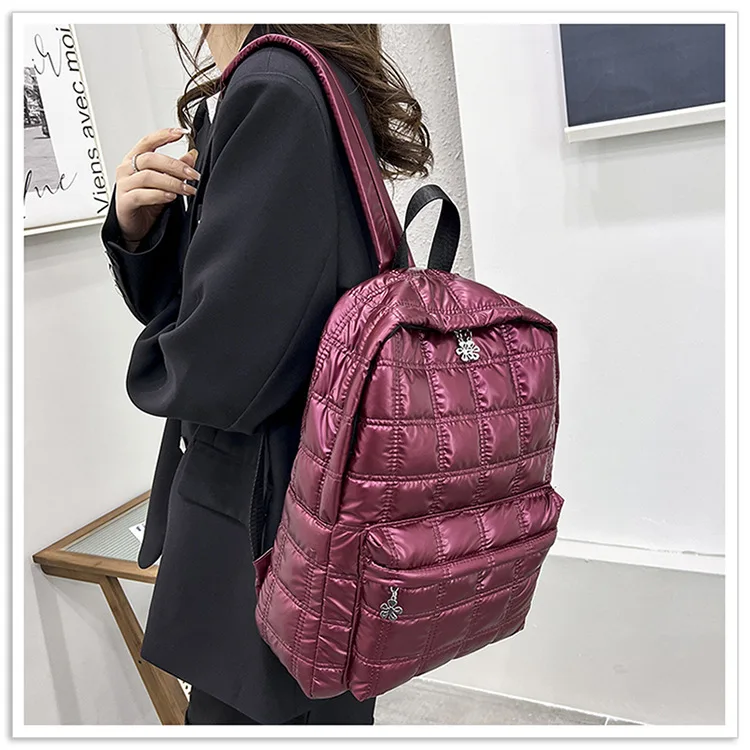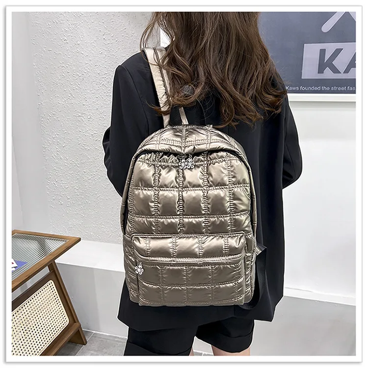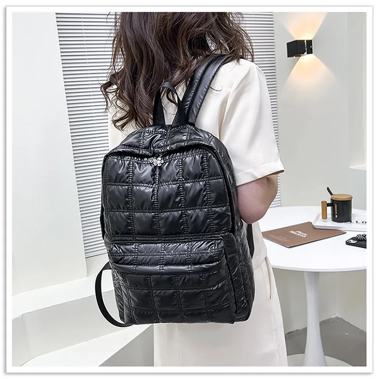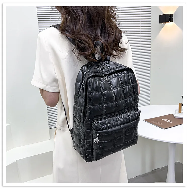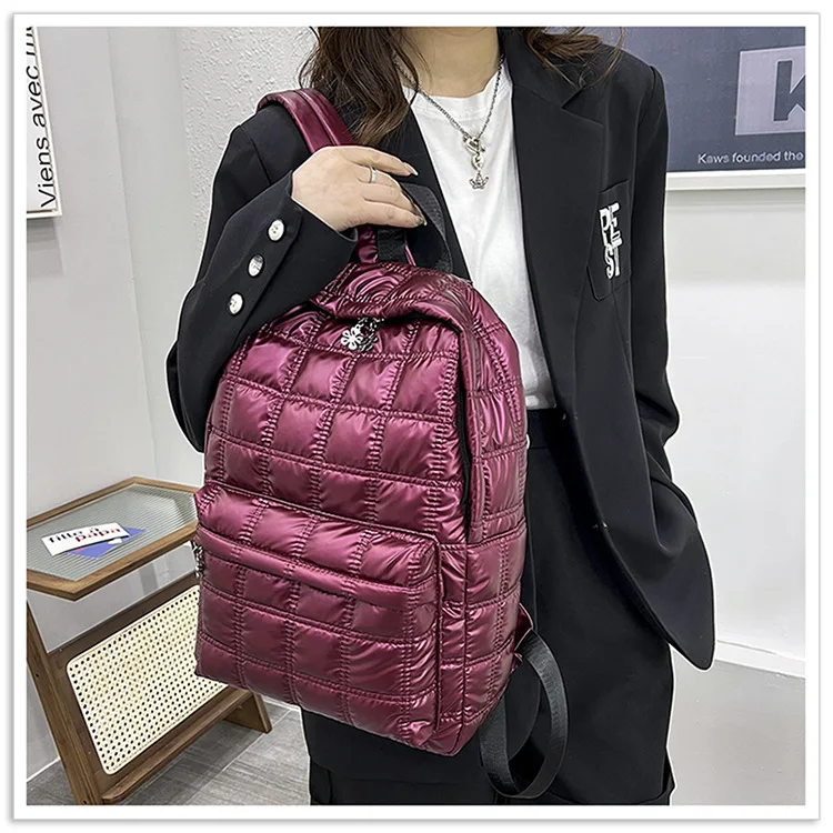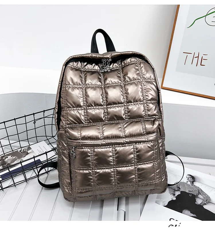 Weiyinxing Winter Ultra Light Space Down Women's Backpack Quilted Plaid Female School Backpacks Bags for Women Girls