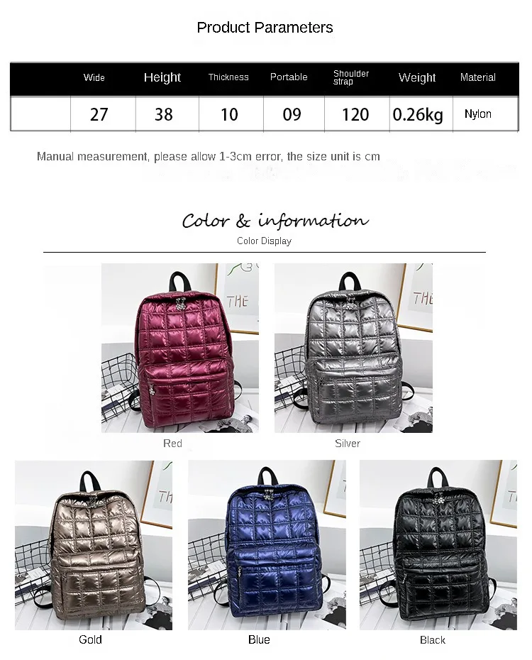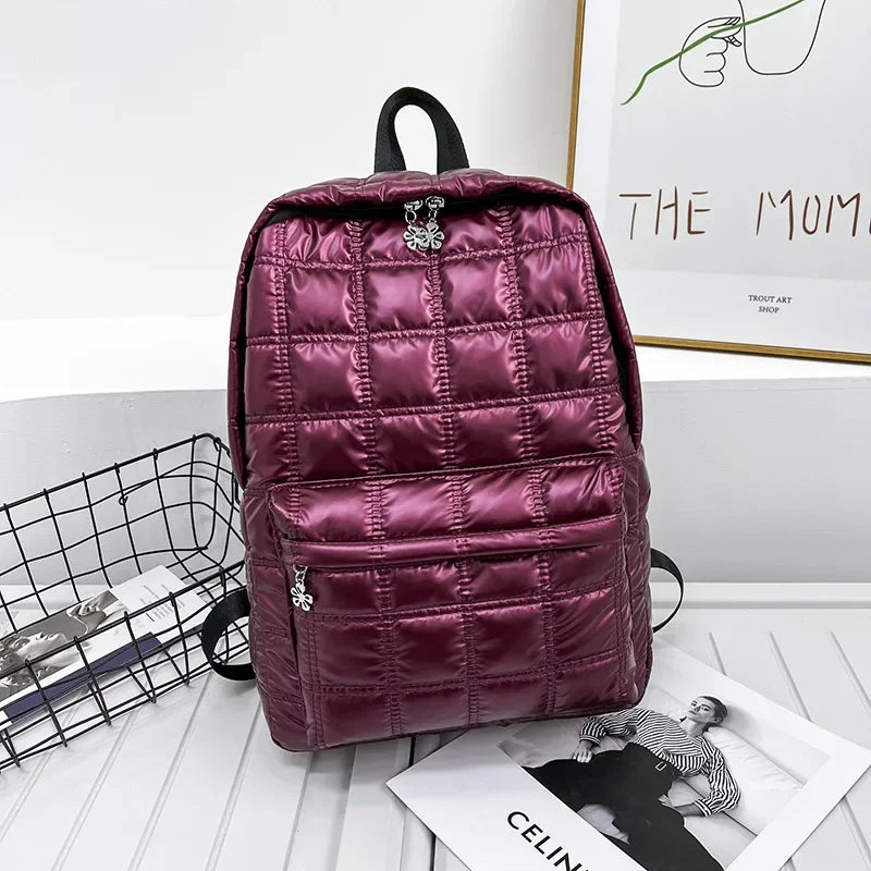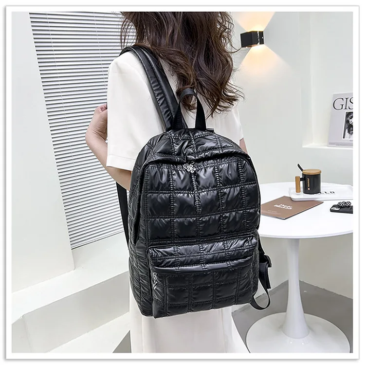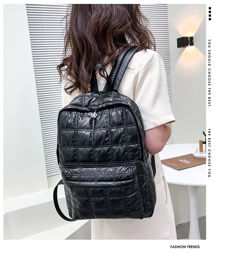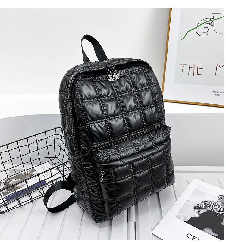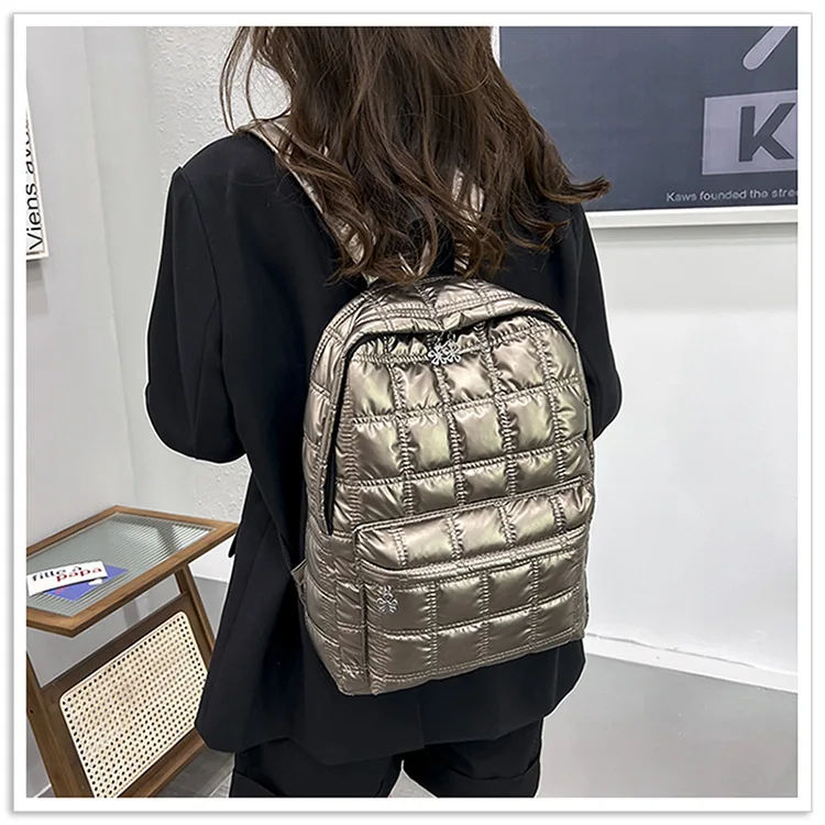 Weiyinxing Winter Ultra Light Space Down Women's Backpack Quilted Plaid Female School Backpacks Bags for Women Girls
