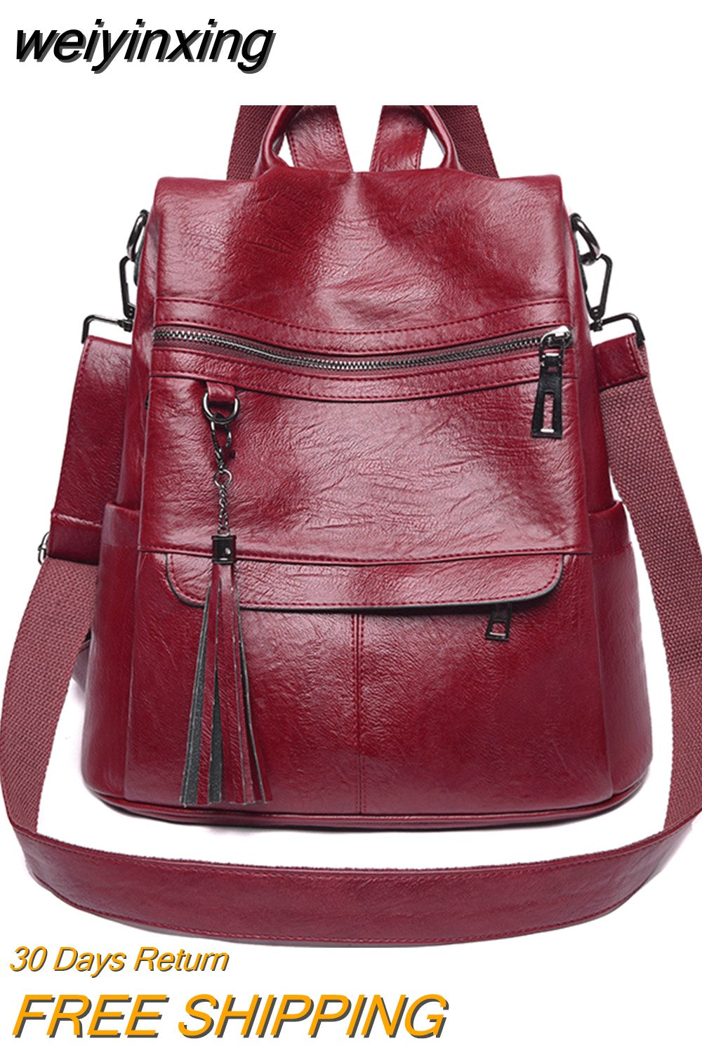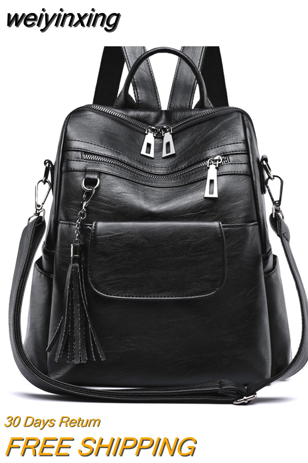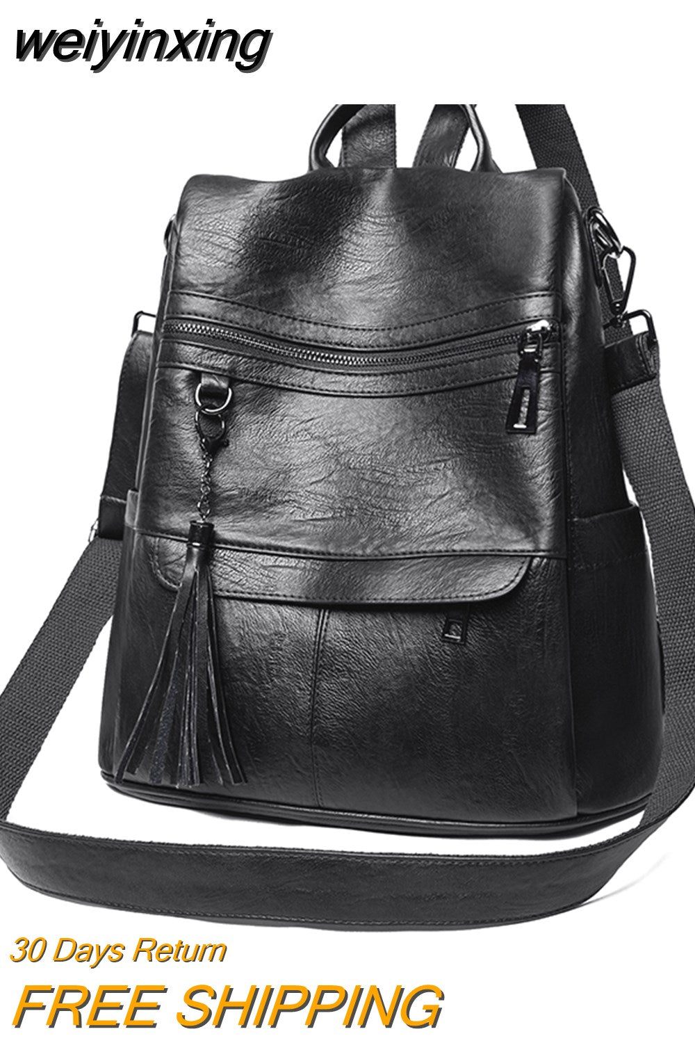 weiyinxing Women Backpack PU Leather Fashion Casual Tassel Bags High Quality Female Shoulder Bag Large Capacity School Backpacks for Girls