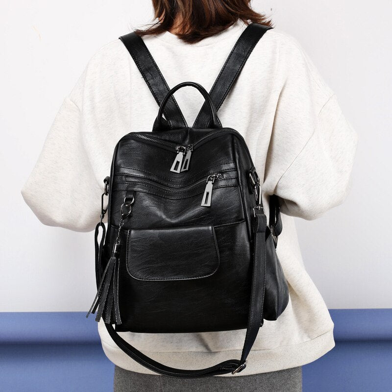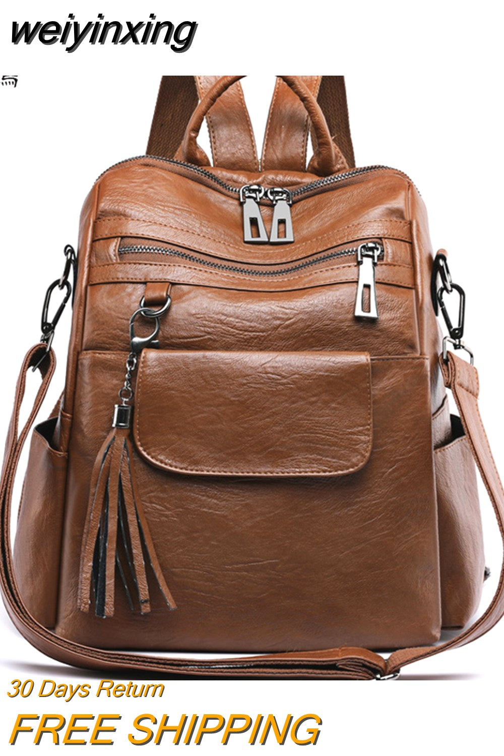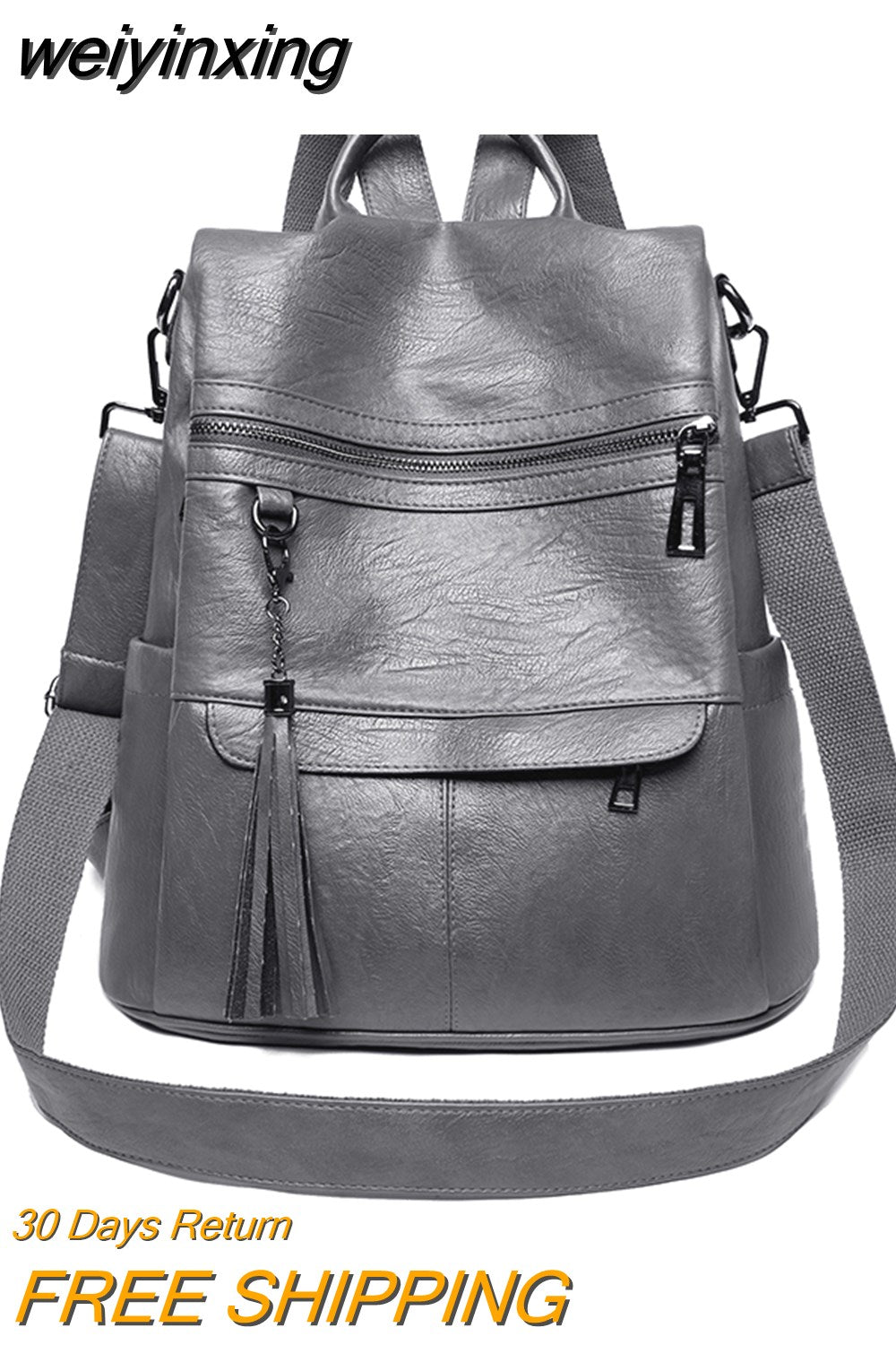 weiyinxing Women Backpack PU Leather Fashion Casual Tassel Bags High Quality Female Shoulder Bag Large Capacity School Backpacks for Girls