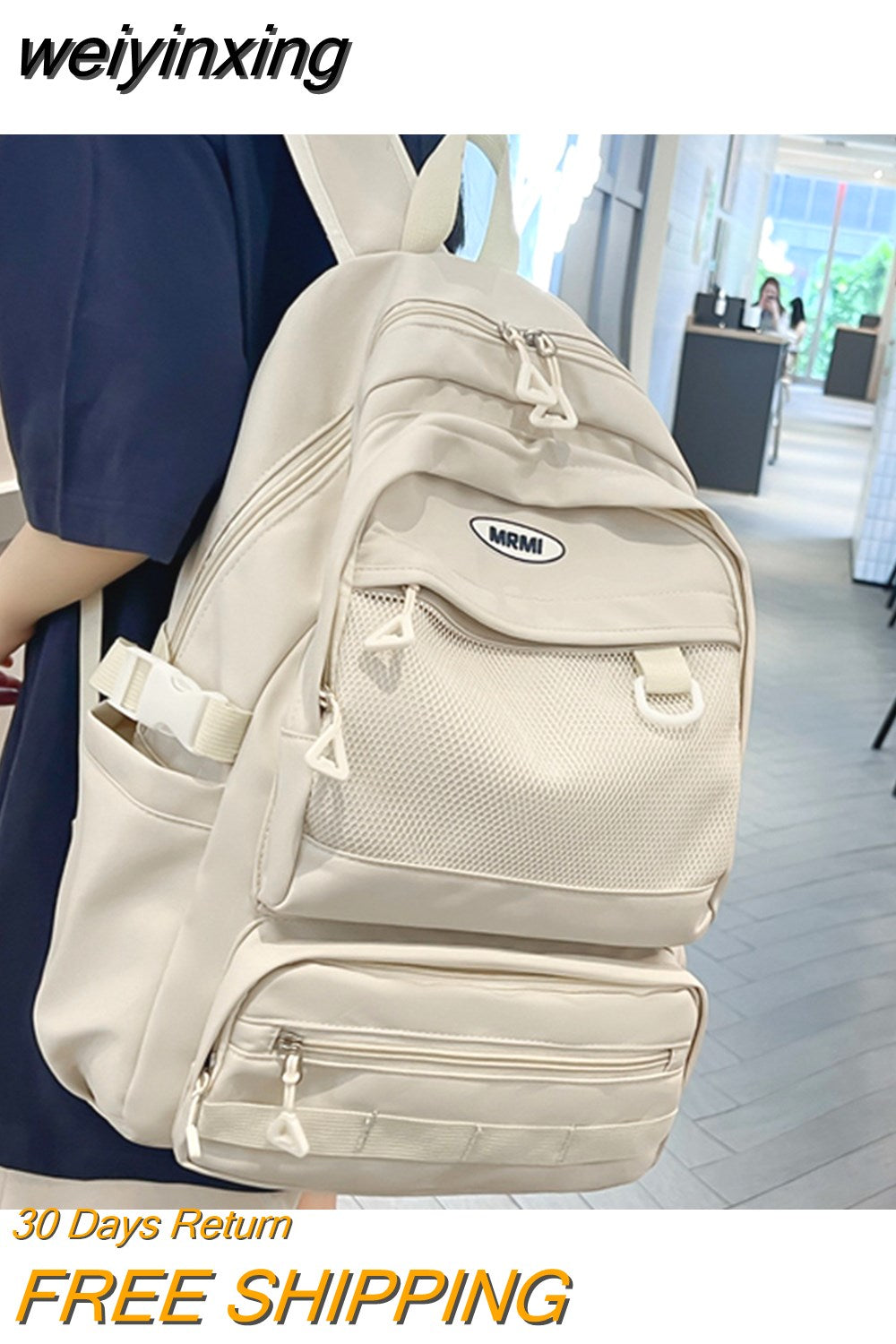 weiyinxing Women Backpack Solid Color Female Multi-pocket Large Capacity Travel Bag School Backpacks for Teenage Girl Men Book Knapsack
