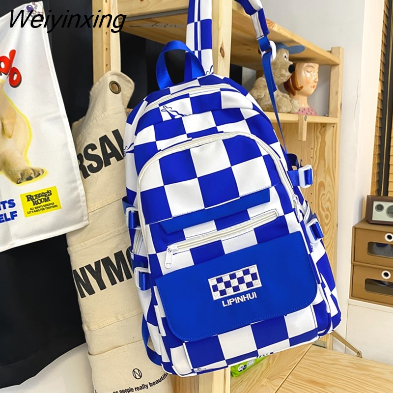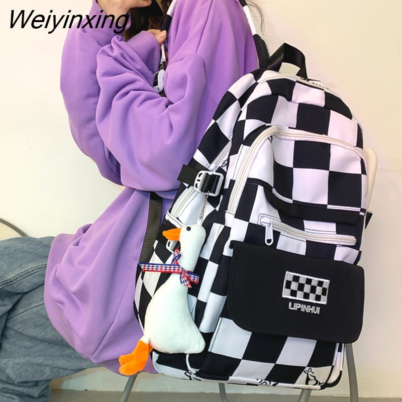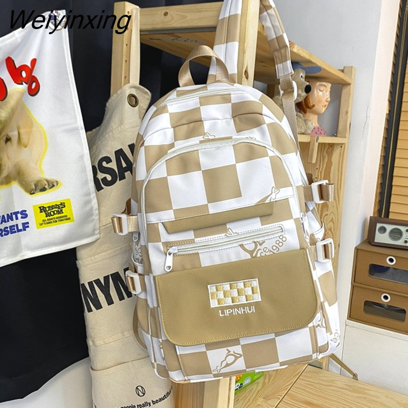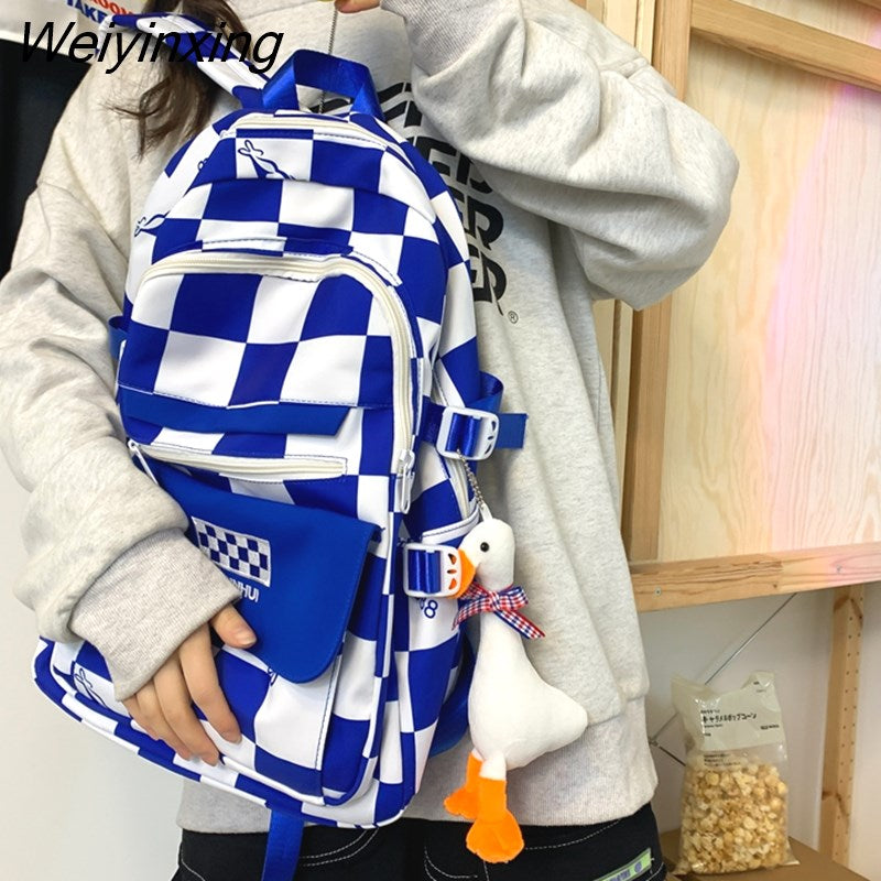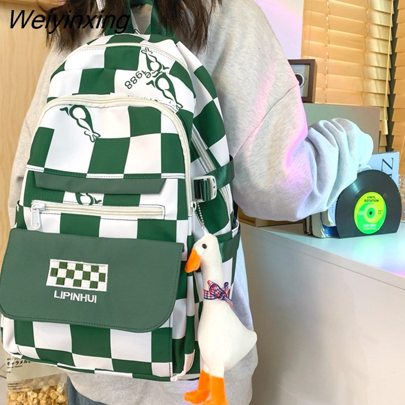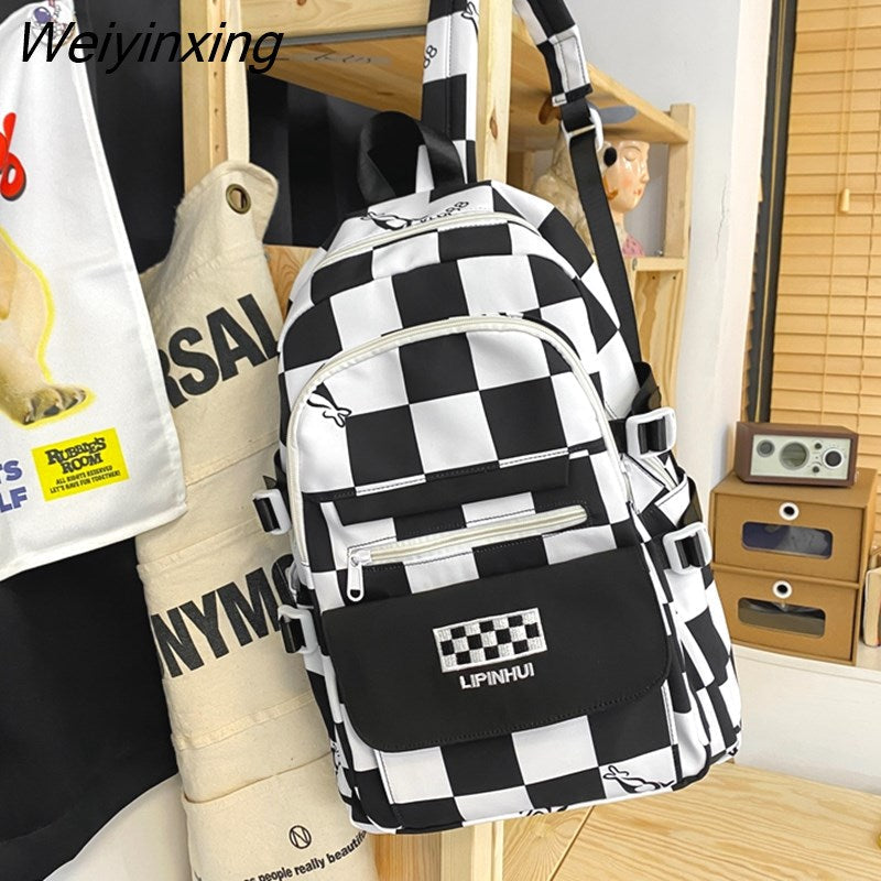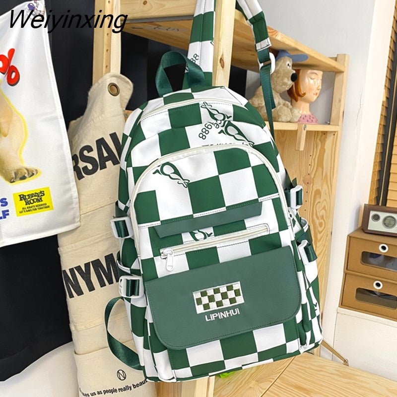 Weiyinxing Women Backpack Waterproof Multi-Pocket Nylon Bookbag Preppy Plaid Schoolbag for Adolescent Female Laptop Back Pack Travel Bag