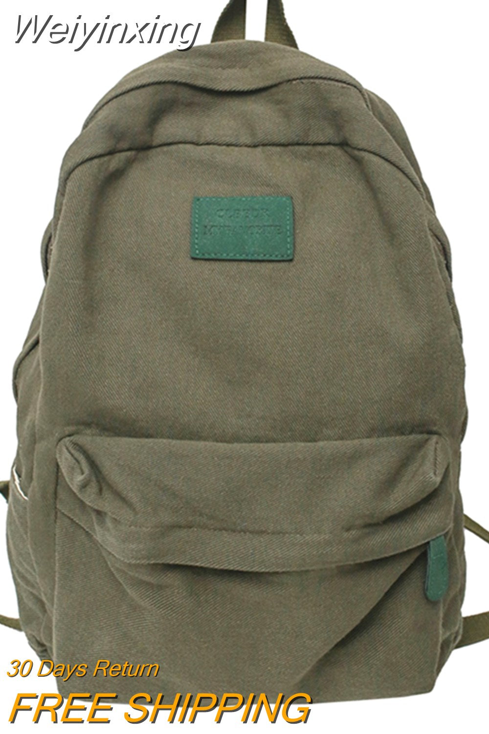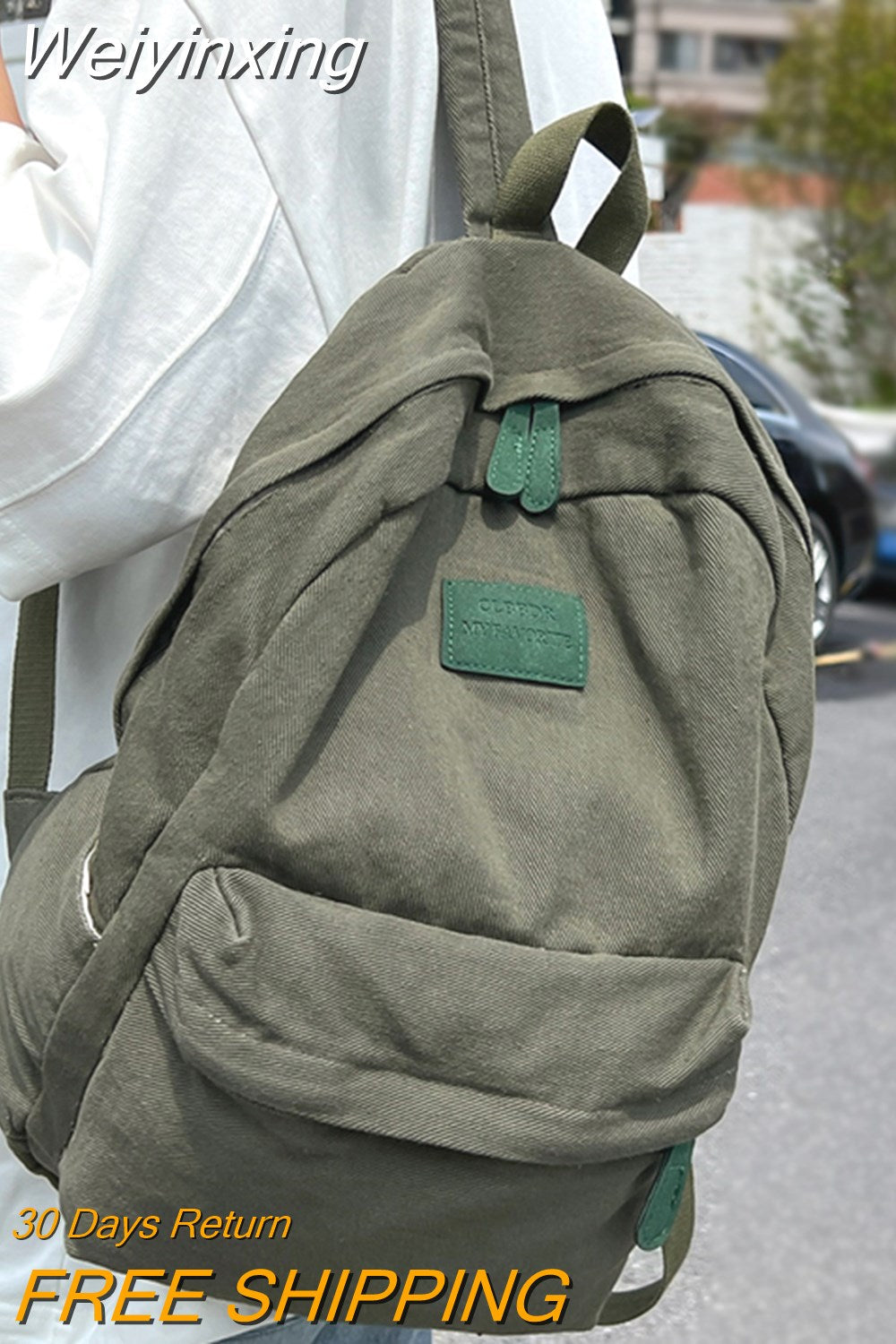 Weiyinxing Women Canvas Green Vintage College Backpack Cool Lady Retro Female Laptop Book Bag Fashion Girl Kawaii Travel School Bags Trendy