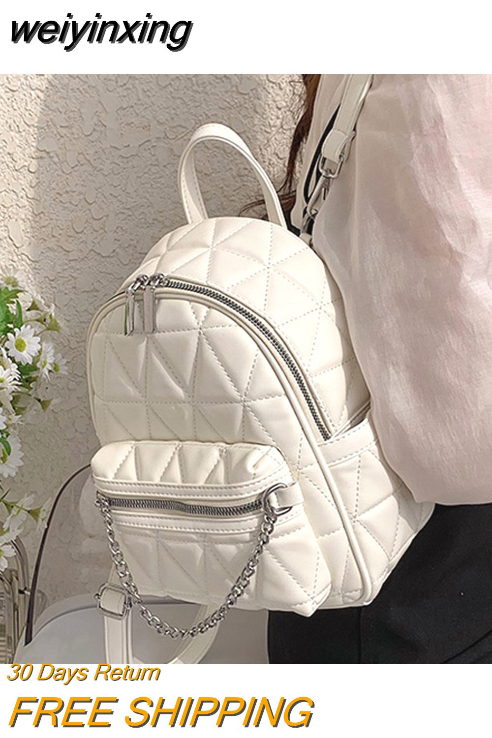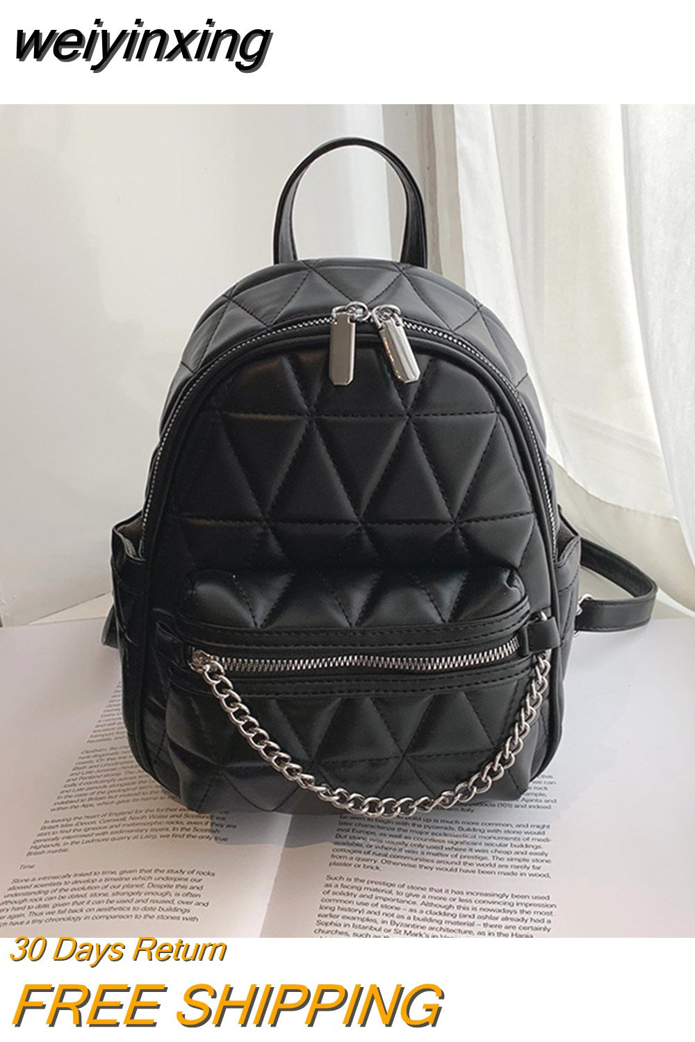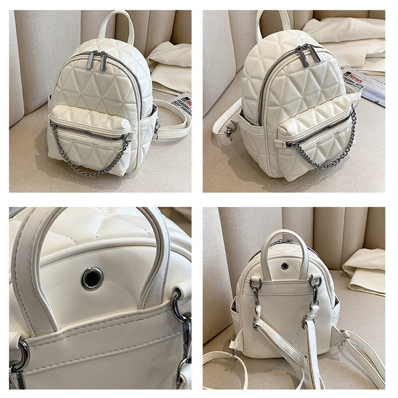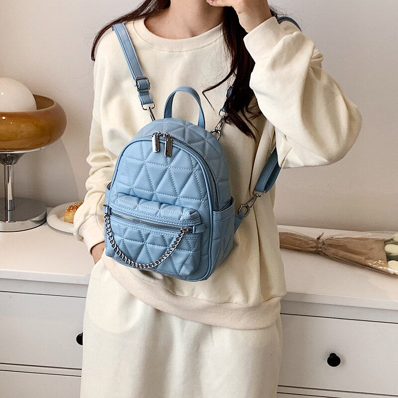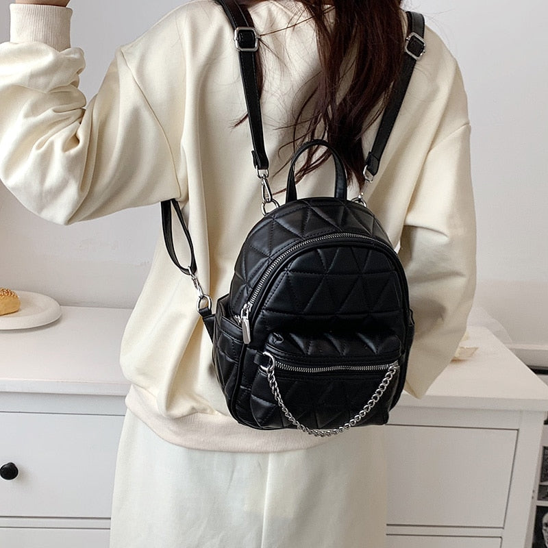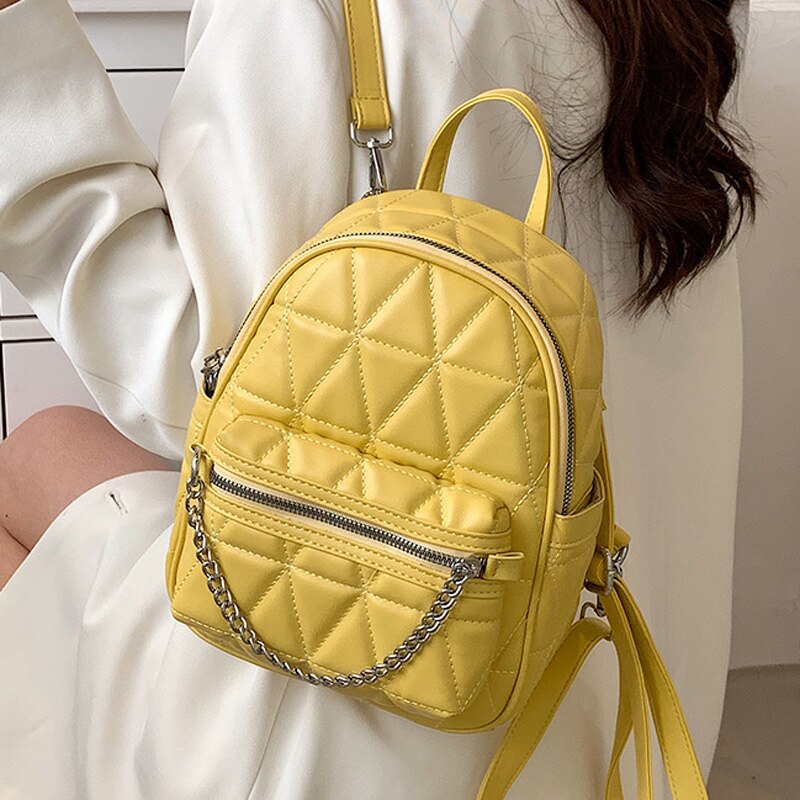 weiyinxing Women Designer Leather Backpacks Sac A Dos Chain Luxury Fashion High Quality Small Backpack for Teenage Girls Mochila Rucksack
