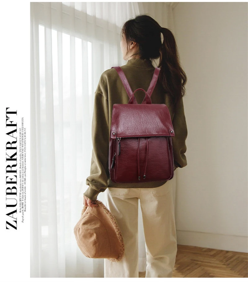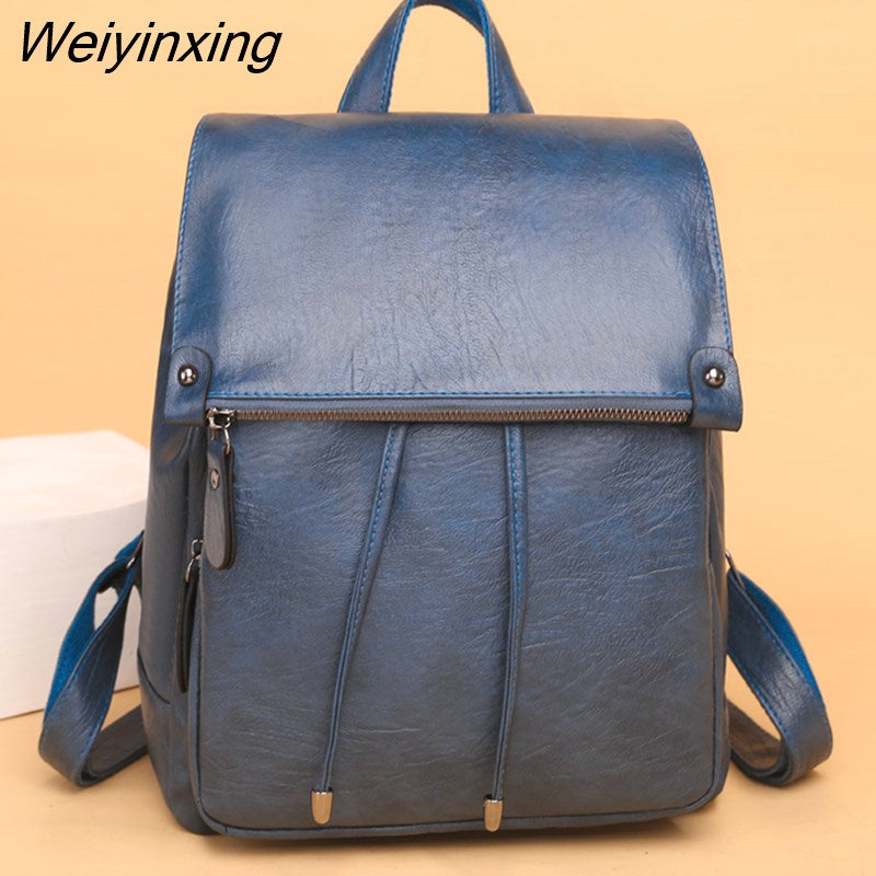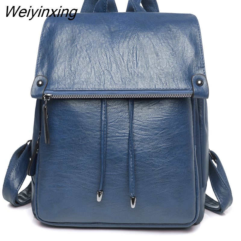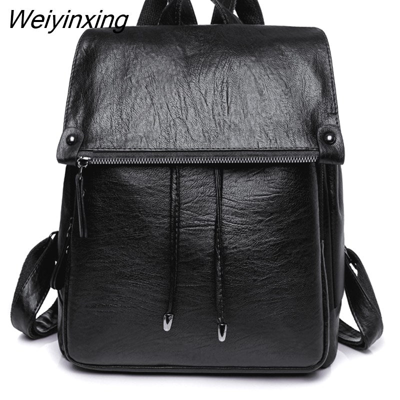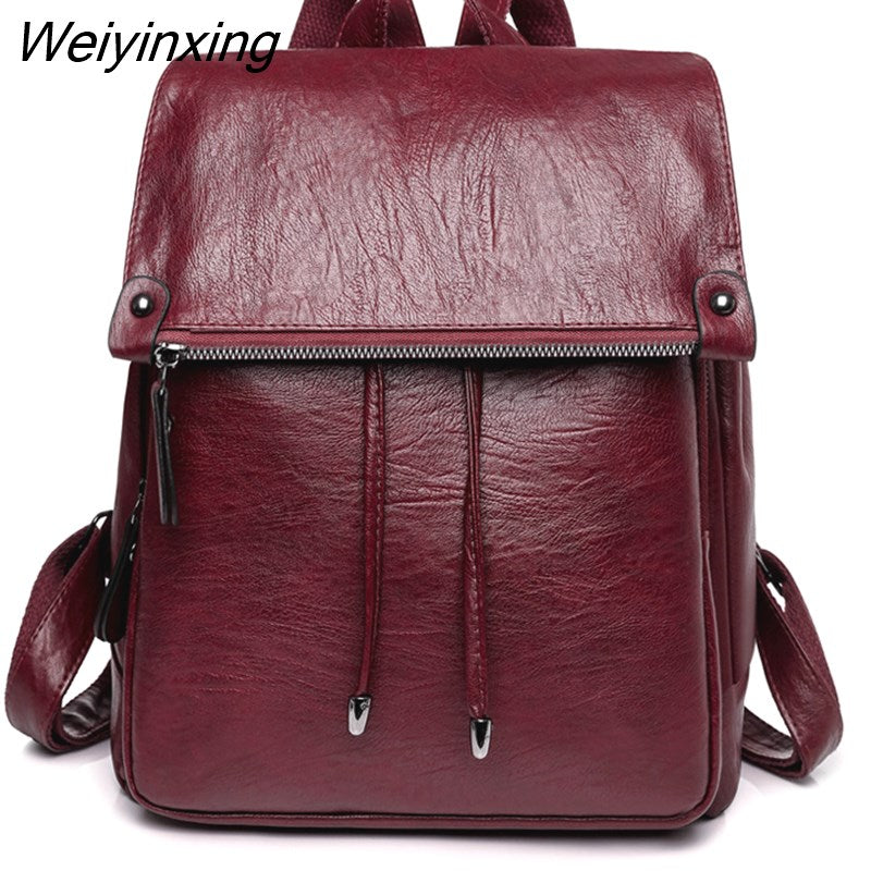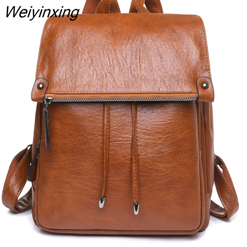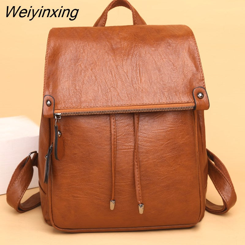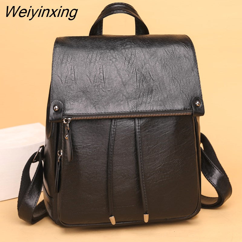 Weiyinxing Women Female Rucksack Leisure Student School Bag Soft Leather Famale Bag New Cowhide High Quality Travel Girls Backpack Korean