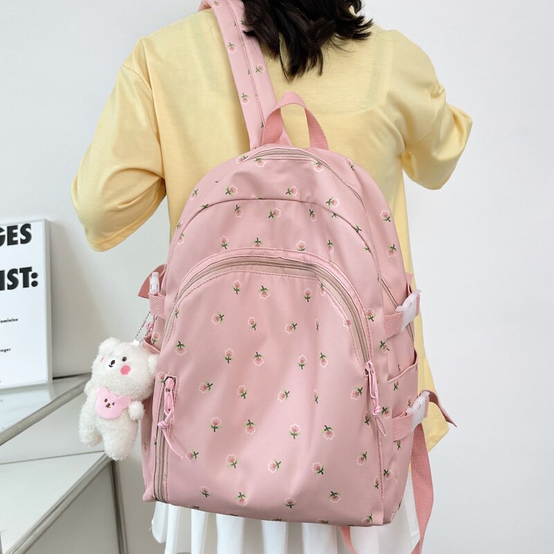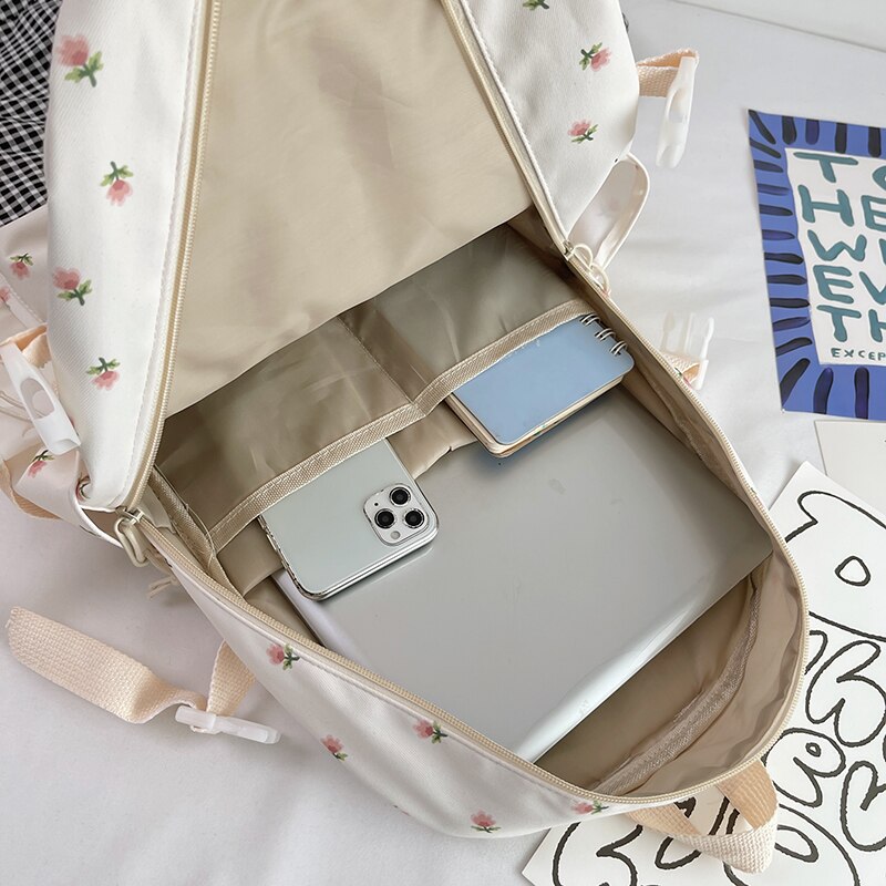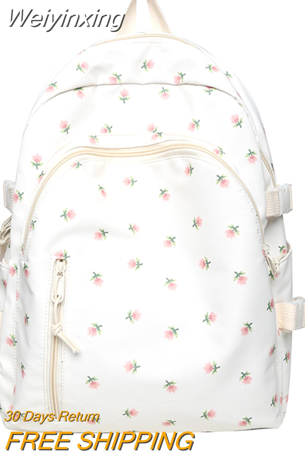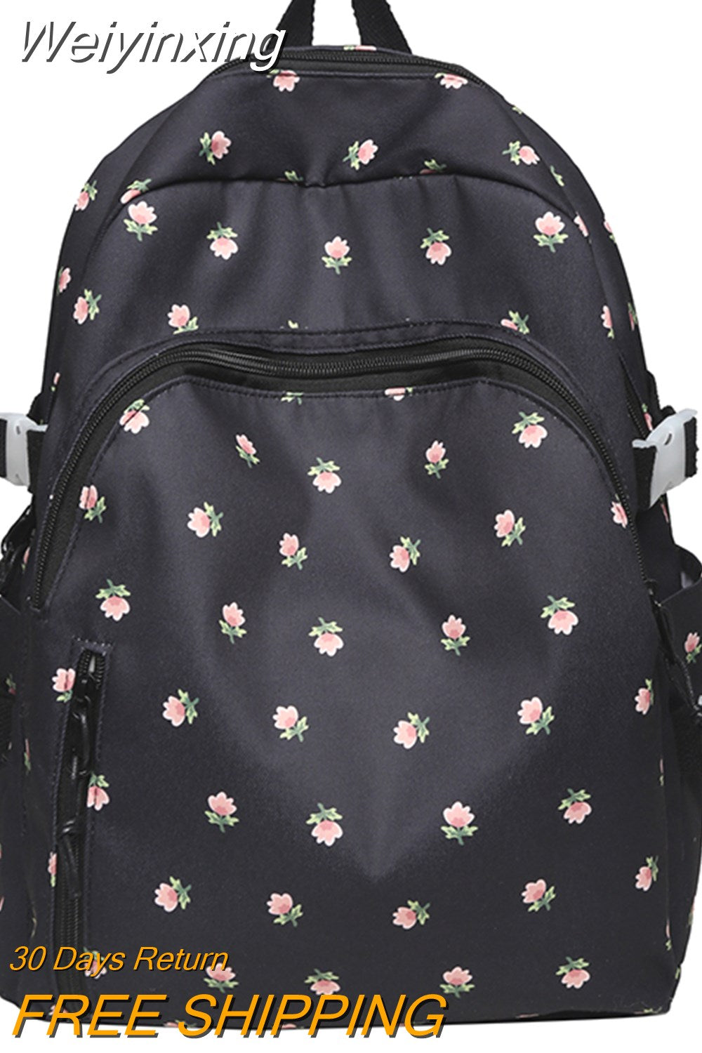 Weiyinxing Women Floral Print Laptop Book Bag Trendy Female College Backpack Girl Travel Kawaii School Bag Lady Nylon Backpack Fashion