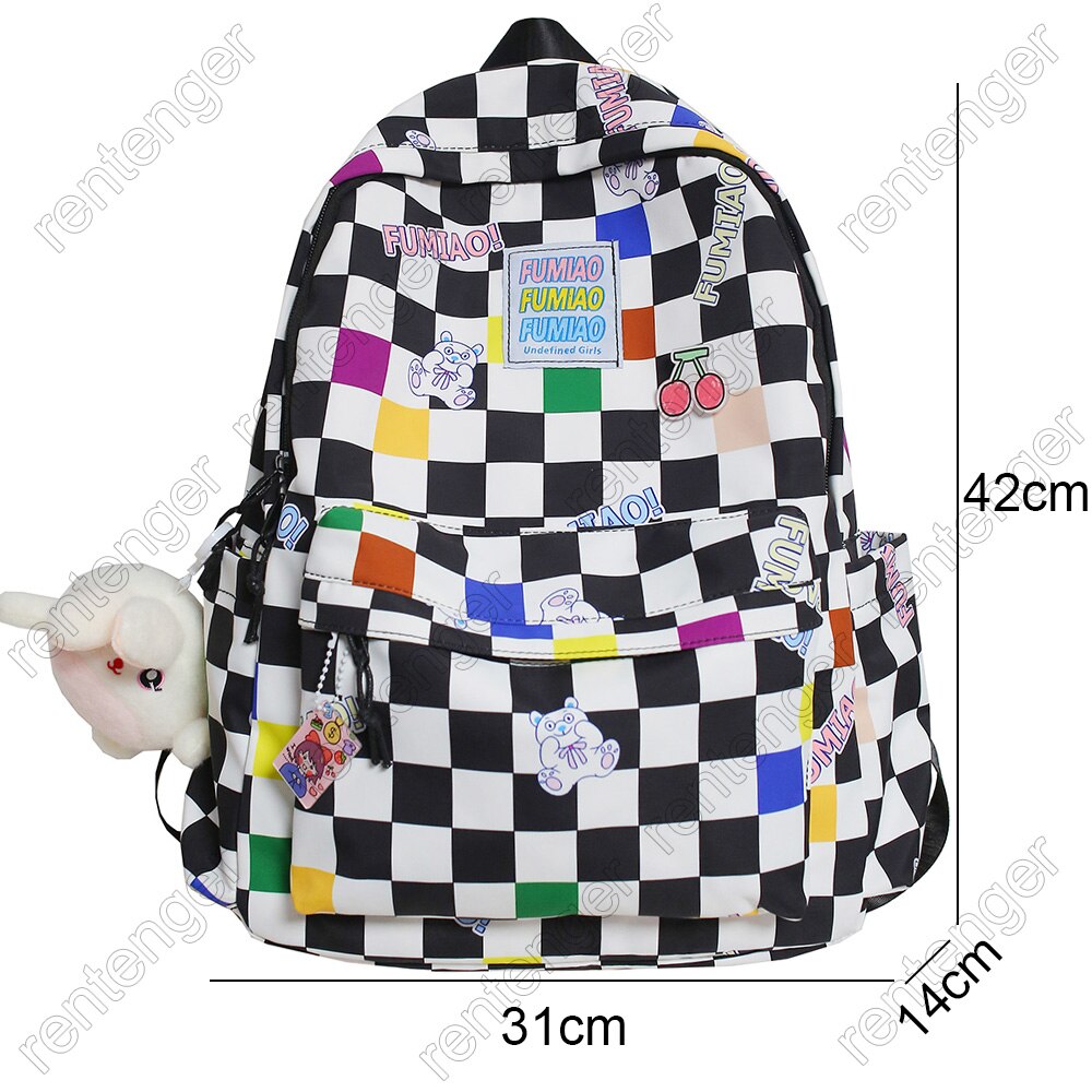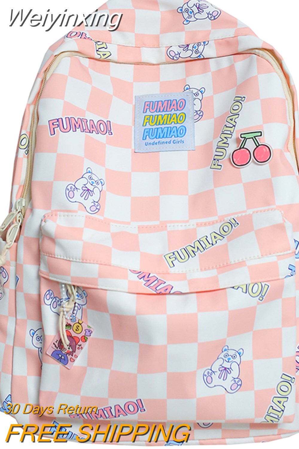Weiyinxing Women Laptop Plaid College Bag Cute Cartoon Girl Travel Backpacks Nylon Fashion Lattice Ladies Kawaii Backpack Female School Bag
