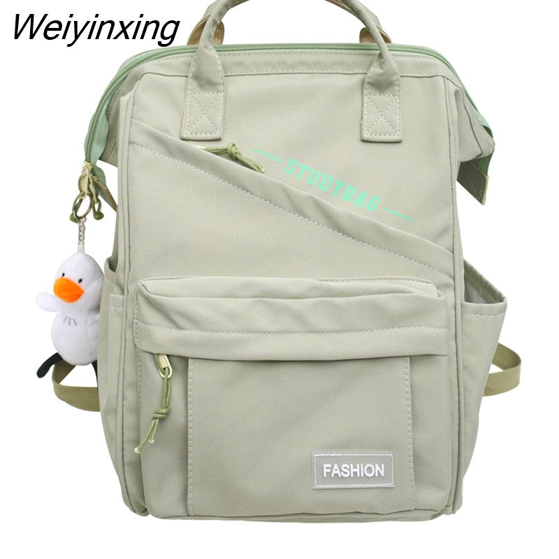Weiyinxing Women Laptop Waterproof Nylon Bag Girl Cute Travel Green Backpack Female Mommy Bag Fashion Ladies College Backpack Kawaii