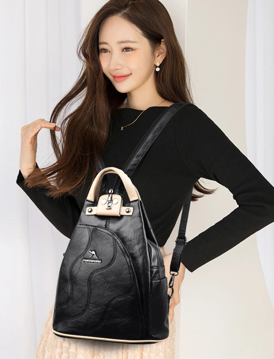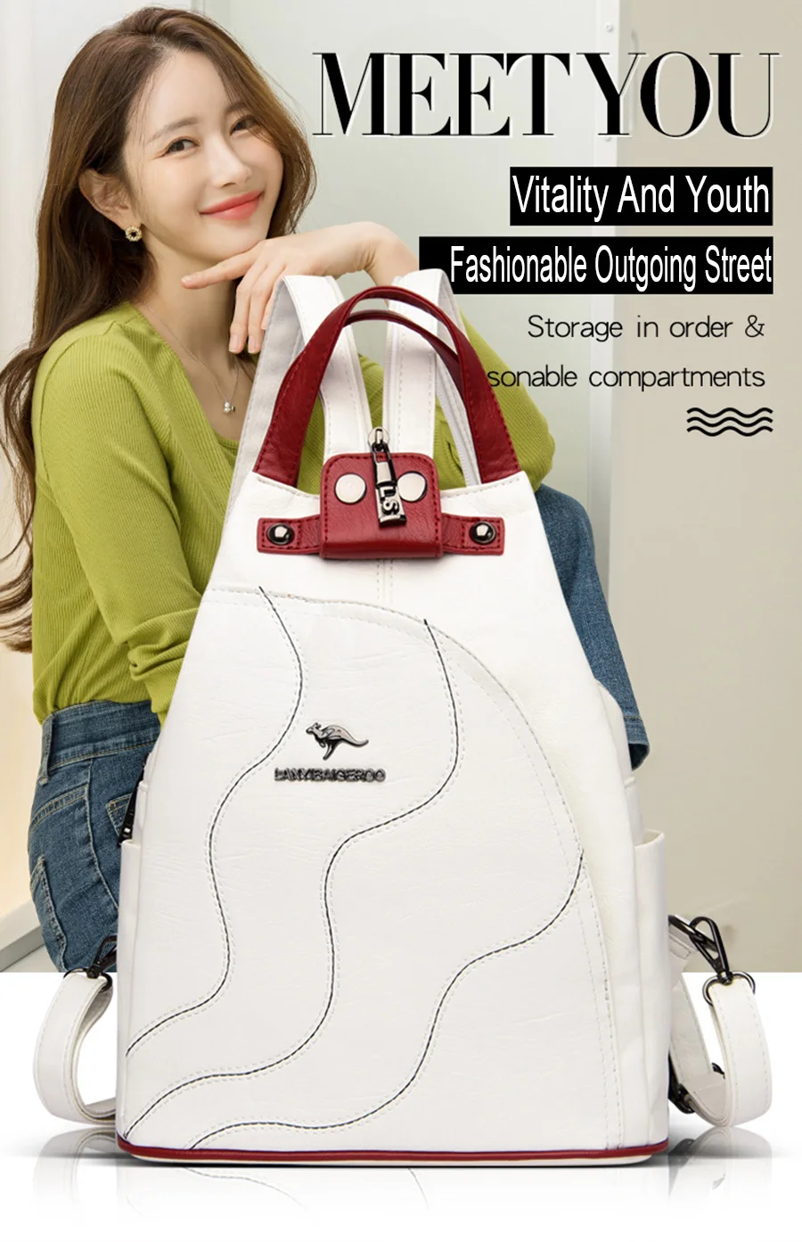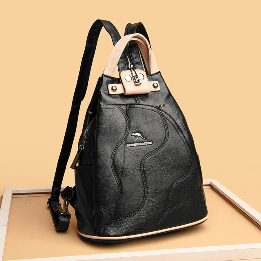Weiyinxing Women Leather Backpacks Female Patchwork Chest Bag Travel Back Pack Ladies Bagpack Mochilas School Bags for Teenage Girls Sac